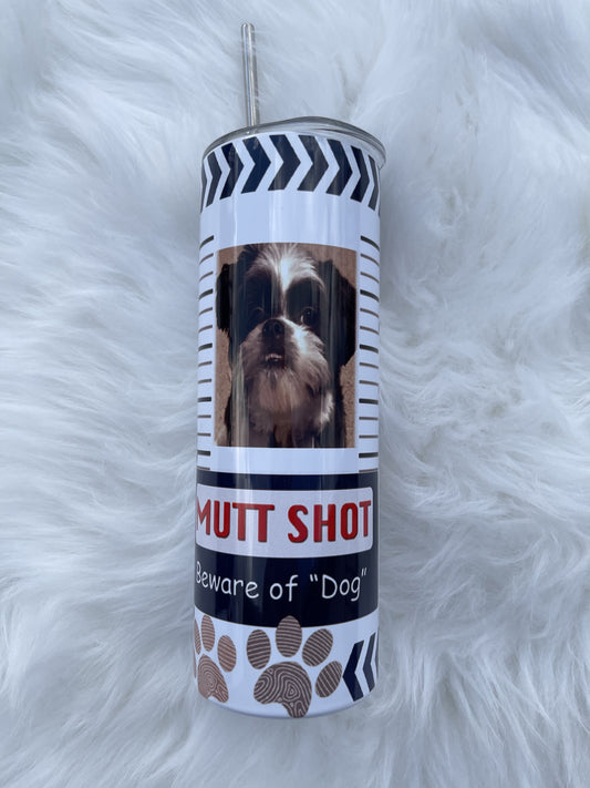 Mutt Shot -Dog tumbler- 20 oz Skinny Tumblers w/ Lid and Metal Straw '
