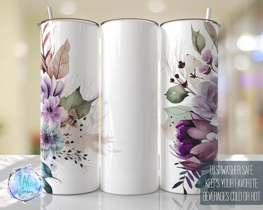 Purple Floral - 20oz or 30oz Skinny Tumblers w/ Lid and Metal Straw