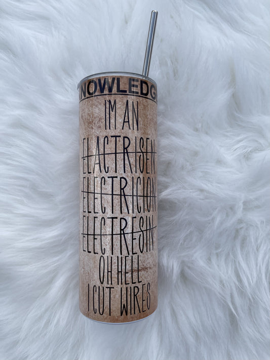 Electrician Tumbler- 20 oz Skinny Tumblers w/ Lid and Metal Straw ‘