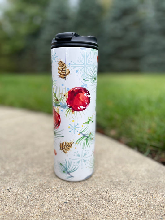 Holiday Christmas Flowers ~20 oz or 30oz Skinny Tumblers w/ Lid and Metal Straw