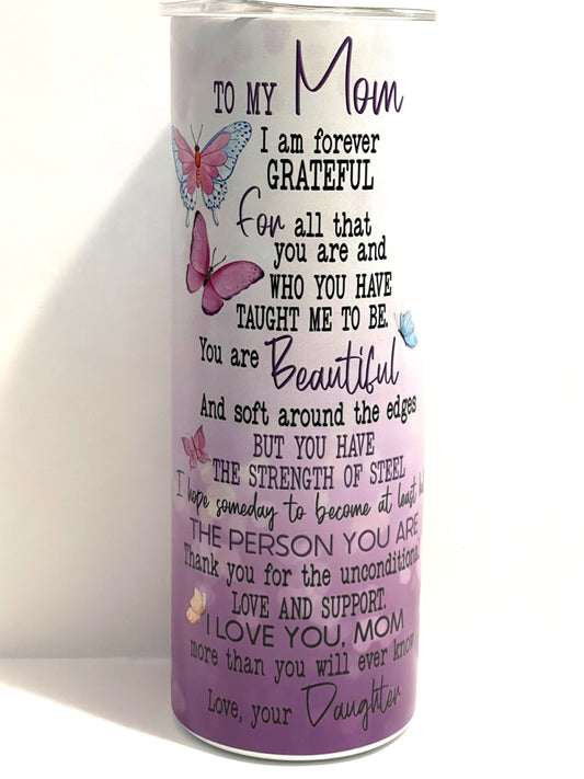 Mothers poem with purple - 20oz or 30oz Skinny Tumblers w/ Lid and Metal Straw