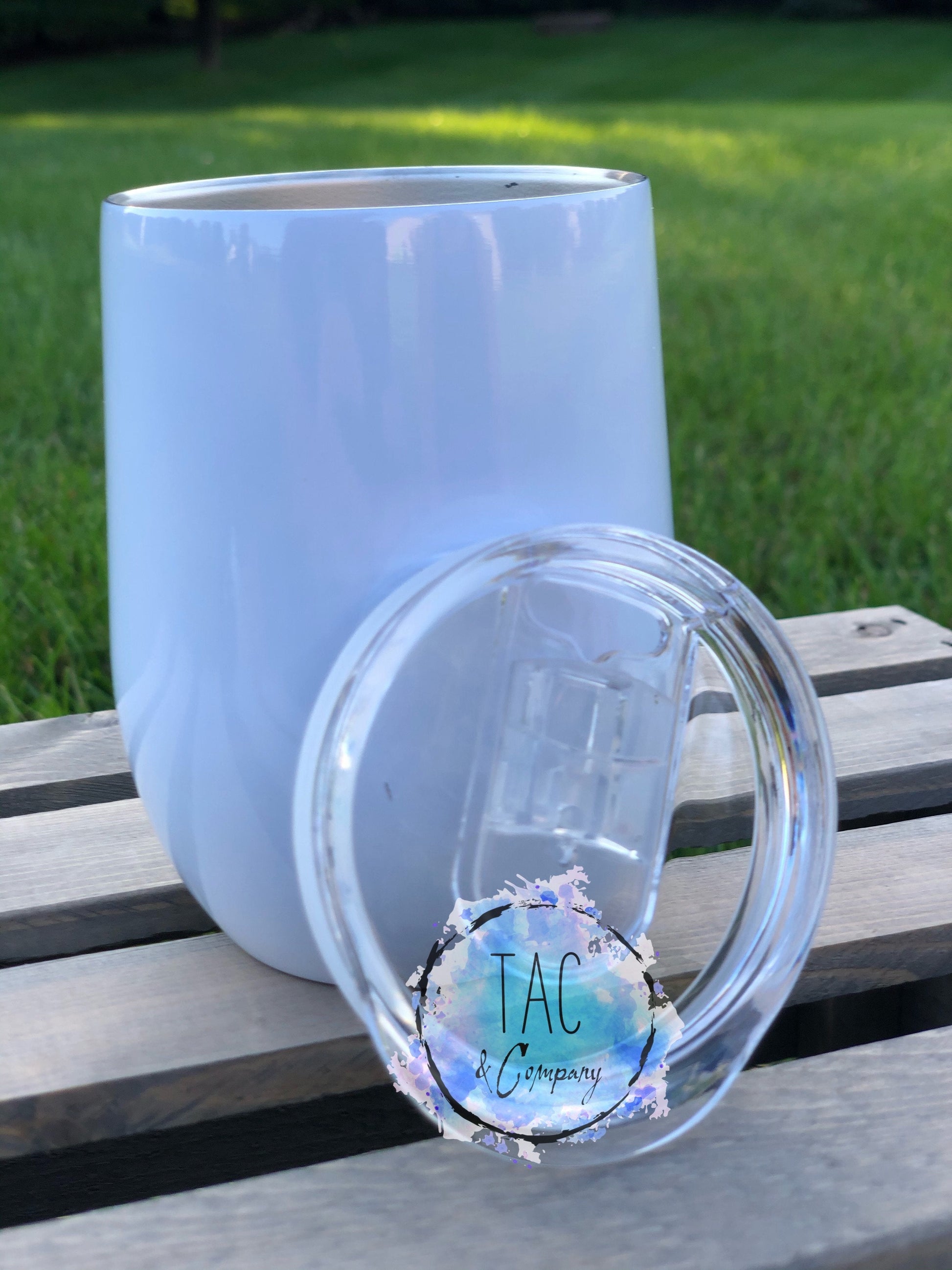 12 oz Stemless Wine Tumbler with Lid- double sided print