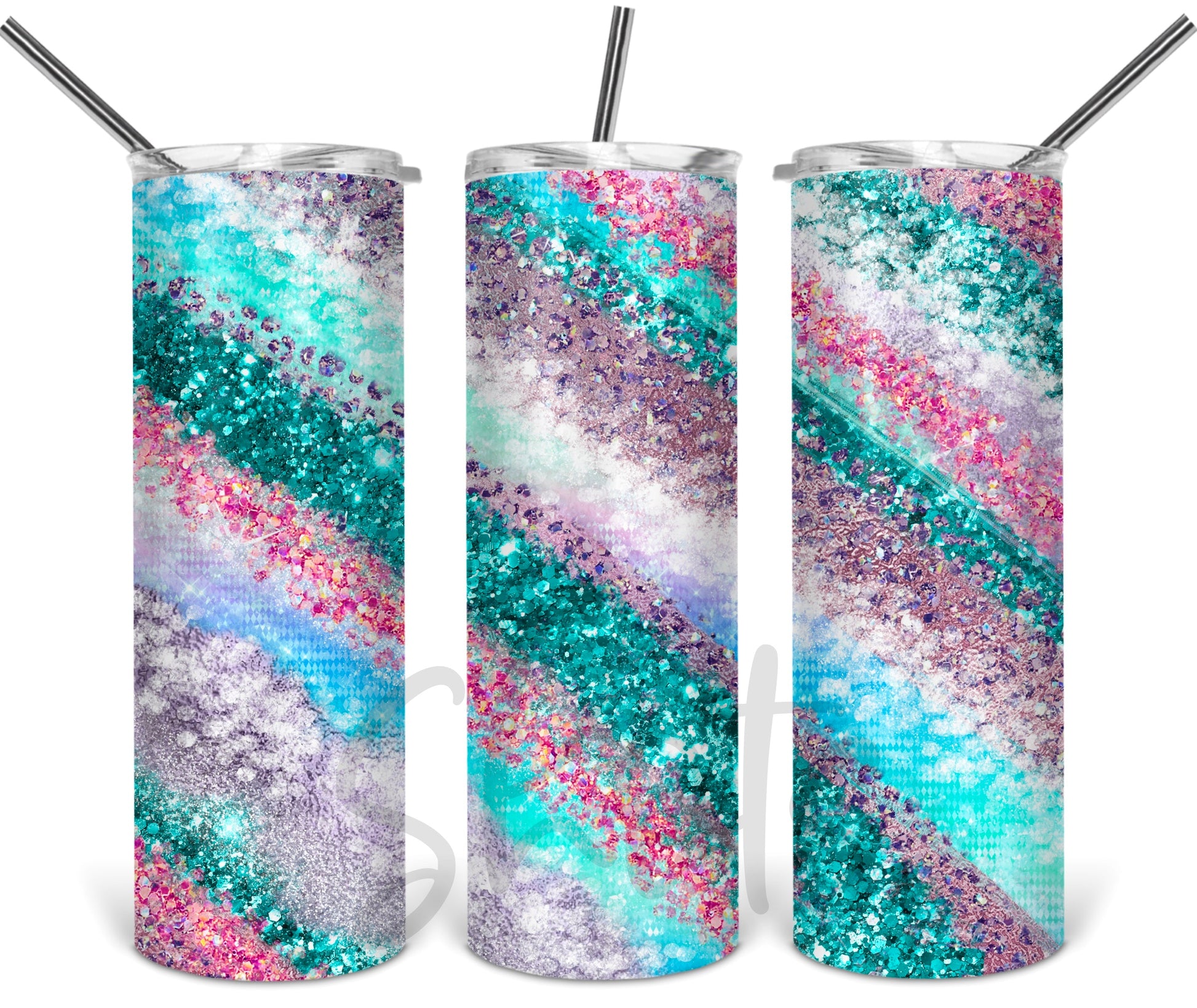 Teal Pink and Purple Milkyway - 20 oz or 30oz Skinny Tumblers w/ Lid and Metal Straw