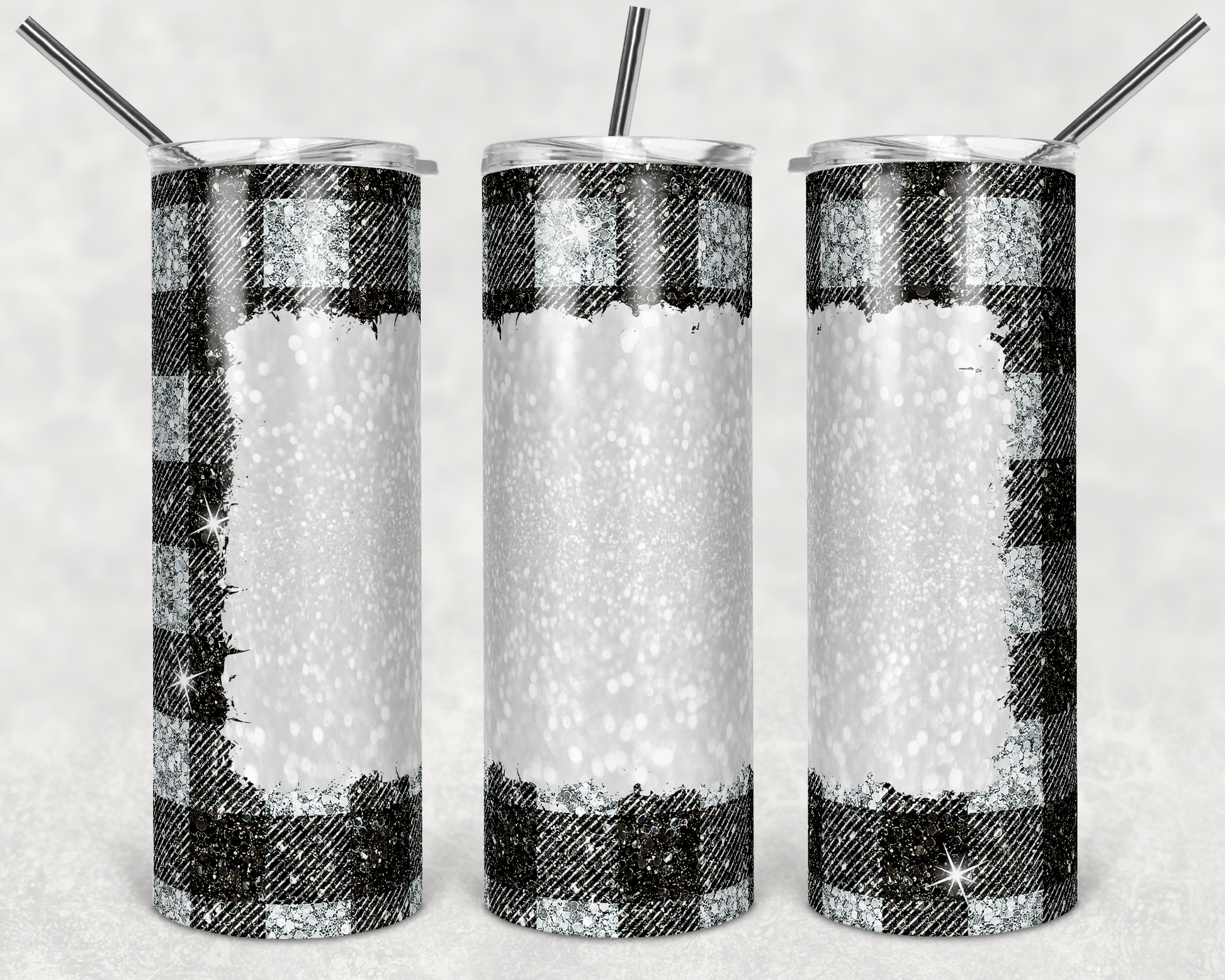 Plaid Black Silver Glitter Holiday - 20oz or 30oz as Skinny Tumblers w/ Lid and Metal Straw