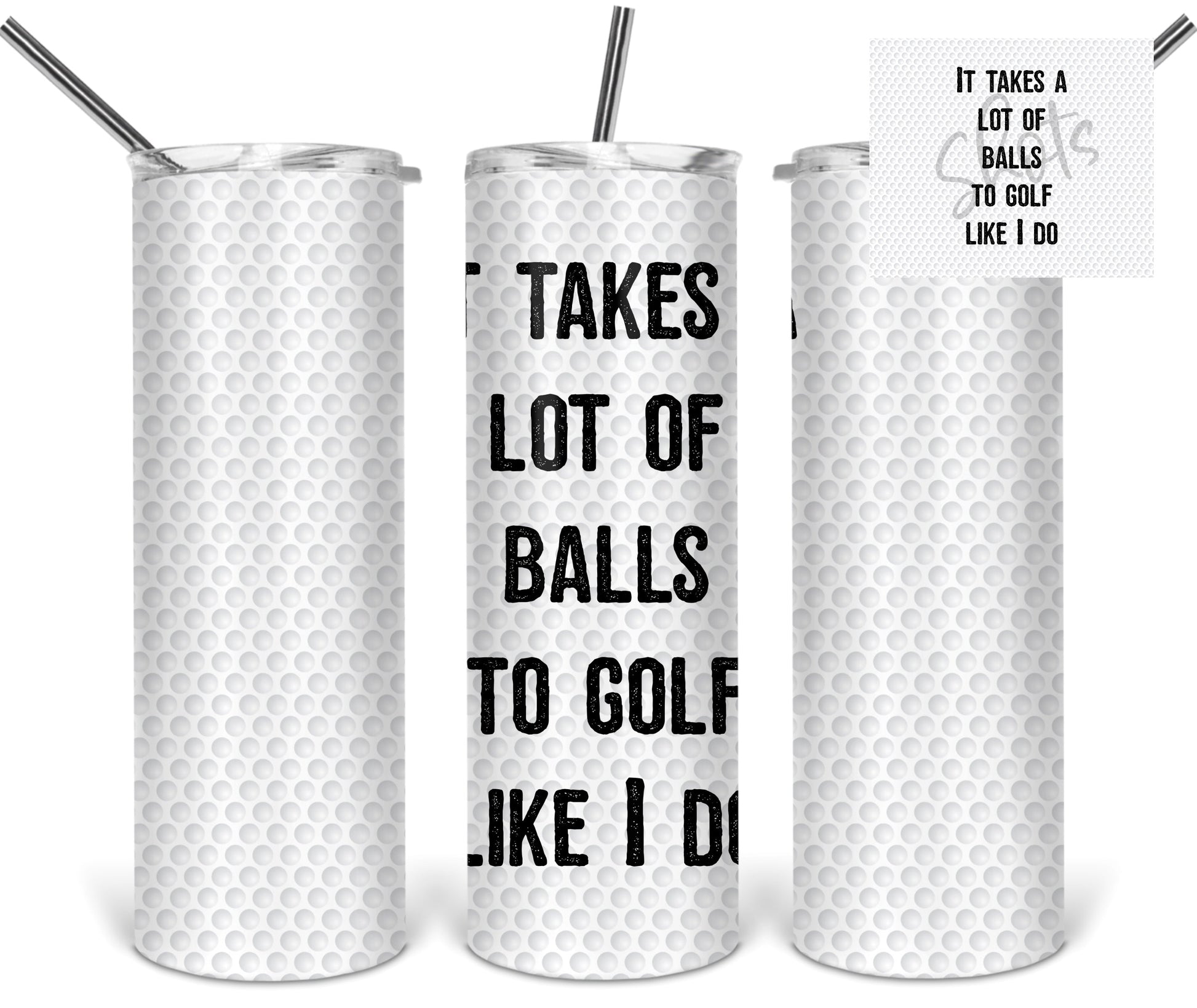 It TAkes A Lot of Balls To Golf Like I Do Sports - 20oz or 30oz Skinny Tumblers w/ Lid and Metal Straw