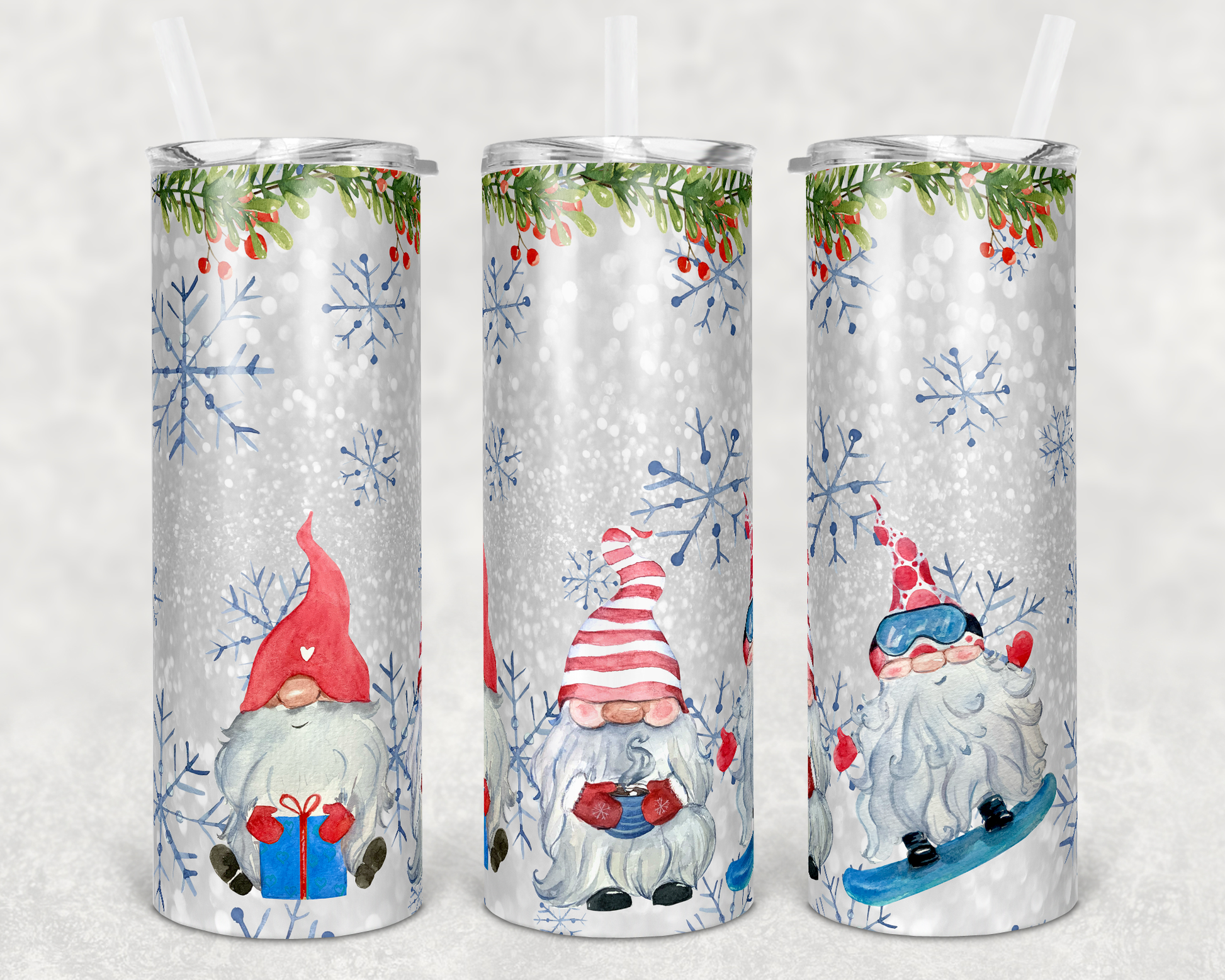 3 sitting Gnome- 20 oz or 30oz Skinny Tumblers w/ Lid and Metal Straw
