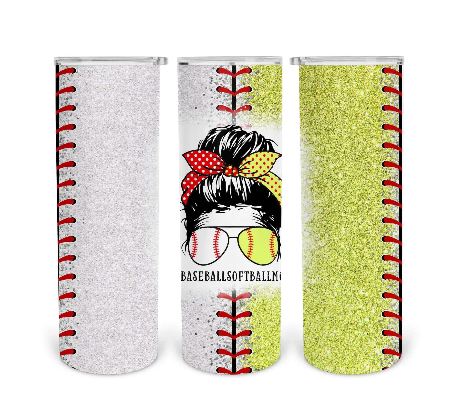 Baseball/Softball Mom Bun - 20oz or 30oz Skinny Tumblers w/ Lid and Metal Straw