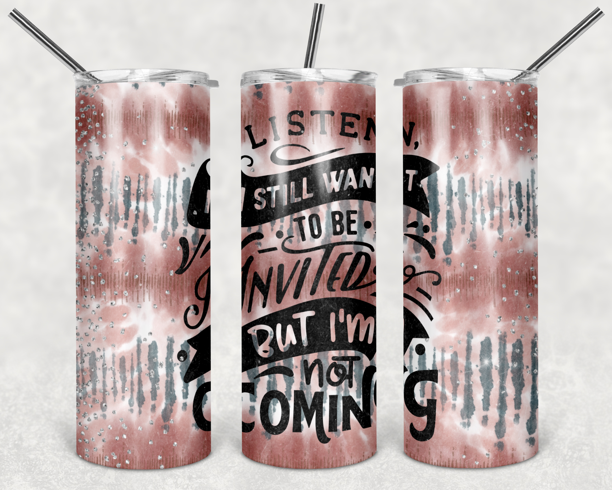 Be Invited but Still Not Coming -20oz or 30oz Skinny Tumblers w/ Lid and Metal Straw