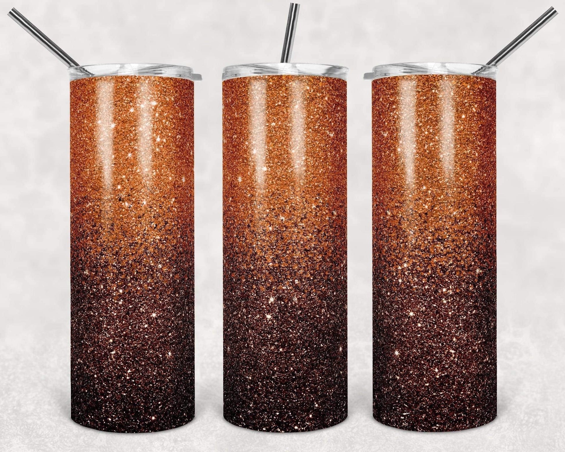 Black Orange Sparkle- 20oz or 30oz Skinny Tumblers w/ Lid and Metal Straw