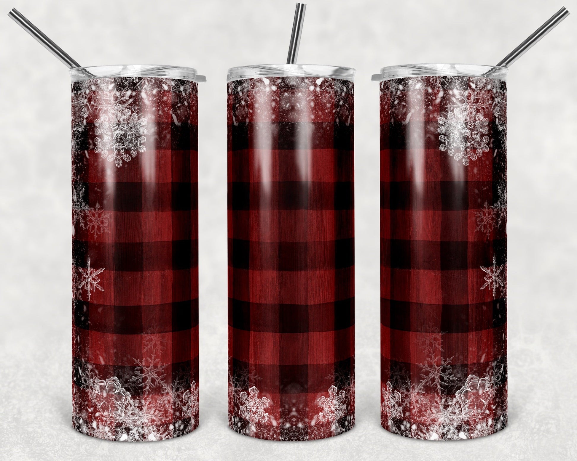 Black Plaid Blue - 20oz or 30oz Skinny Tumblers w/ Lid and Metal Straw
