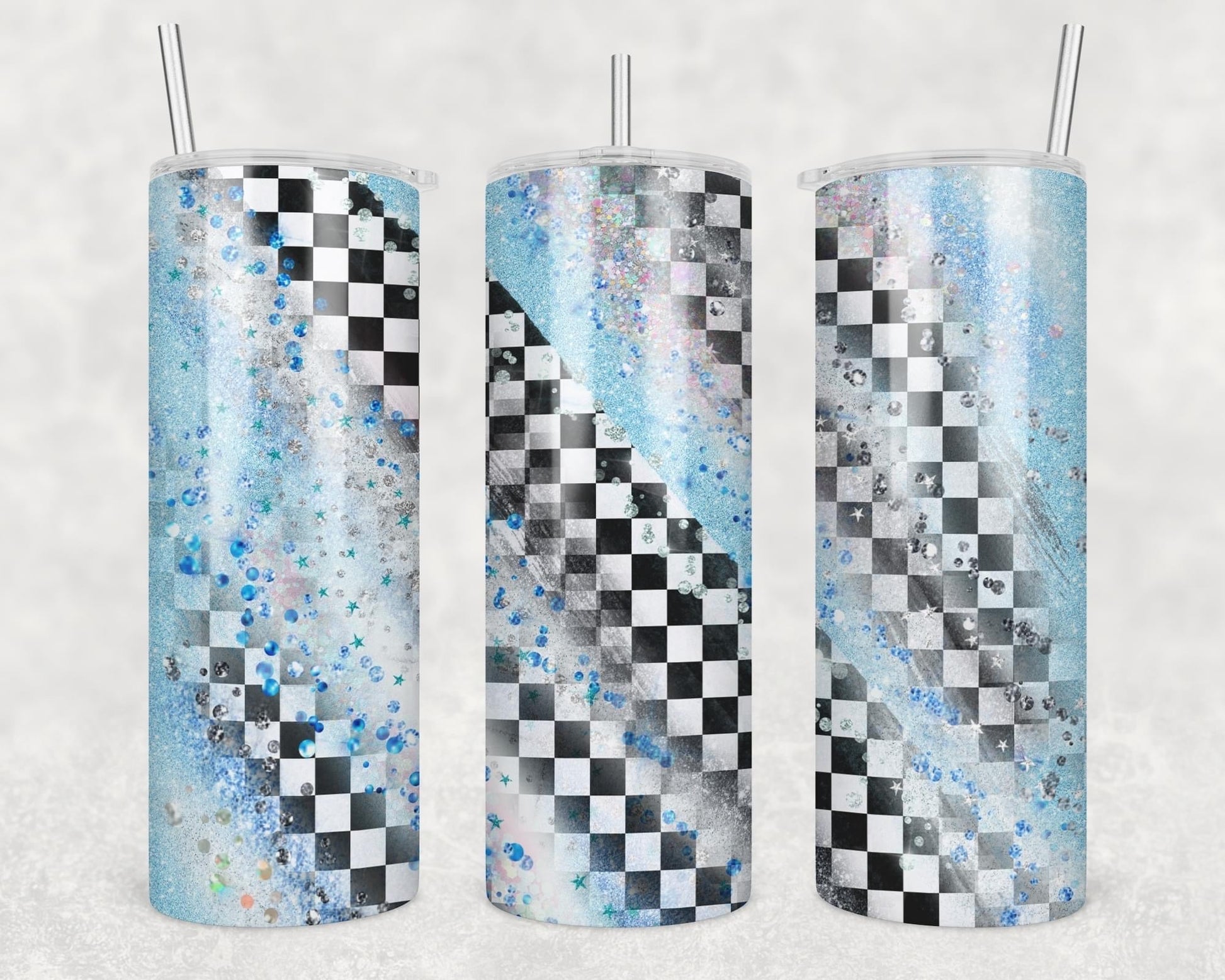 Blue and Pink Checkers- 20 oz or 30oz Skinny Tumblers w/ Lid and Metal Straw