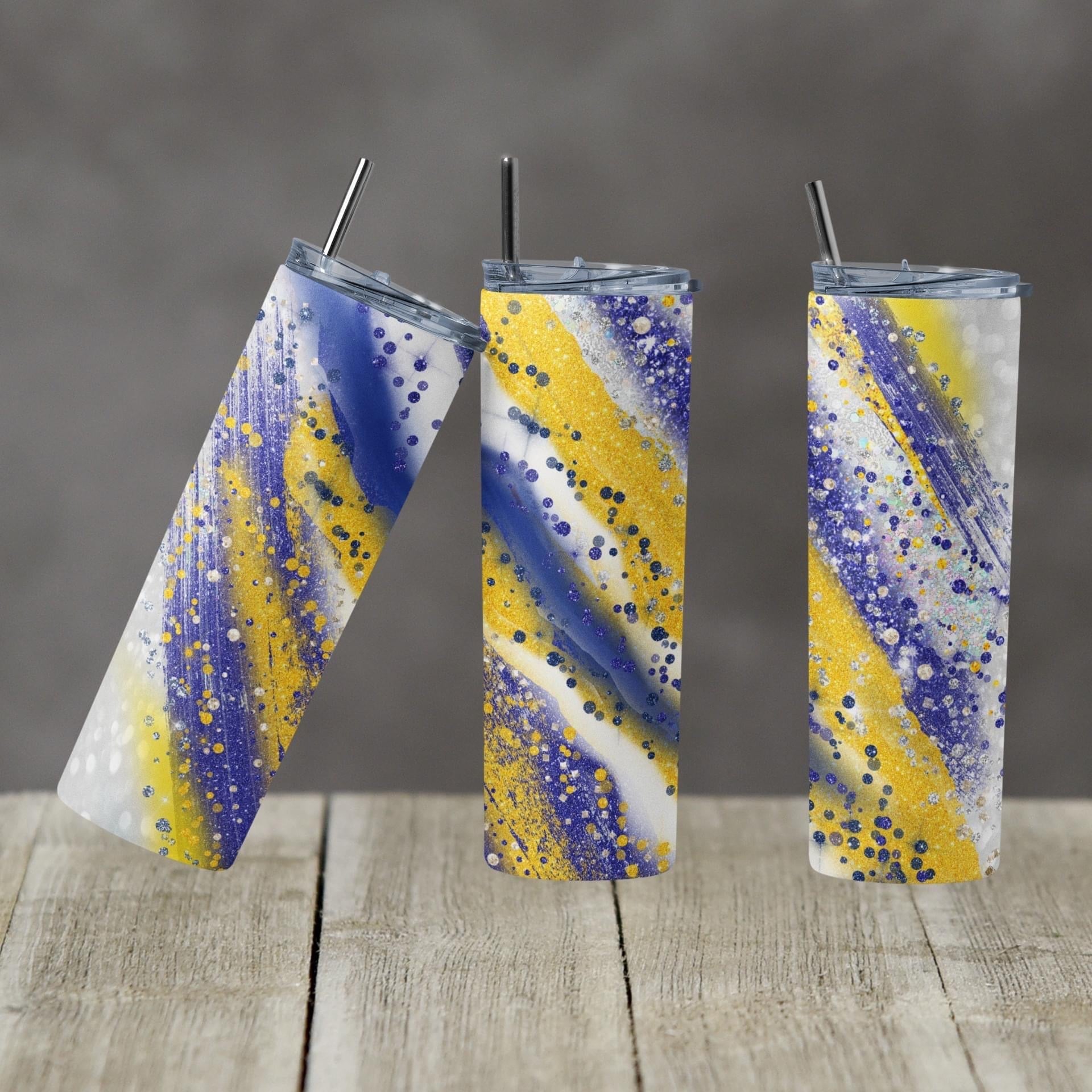 Blue White & Gold - 20 oz or 30oz Skinny Tumblers w/ Lid and Metal Straw