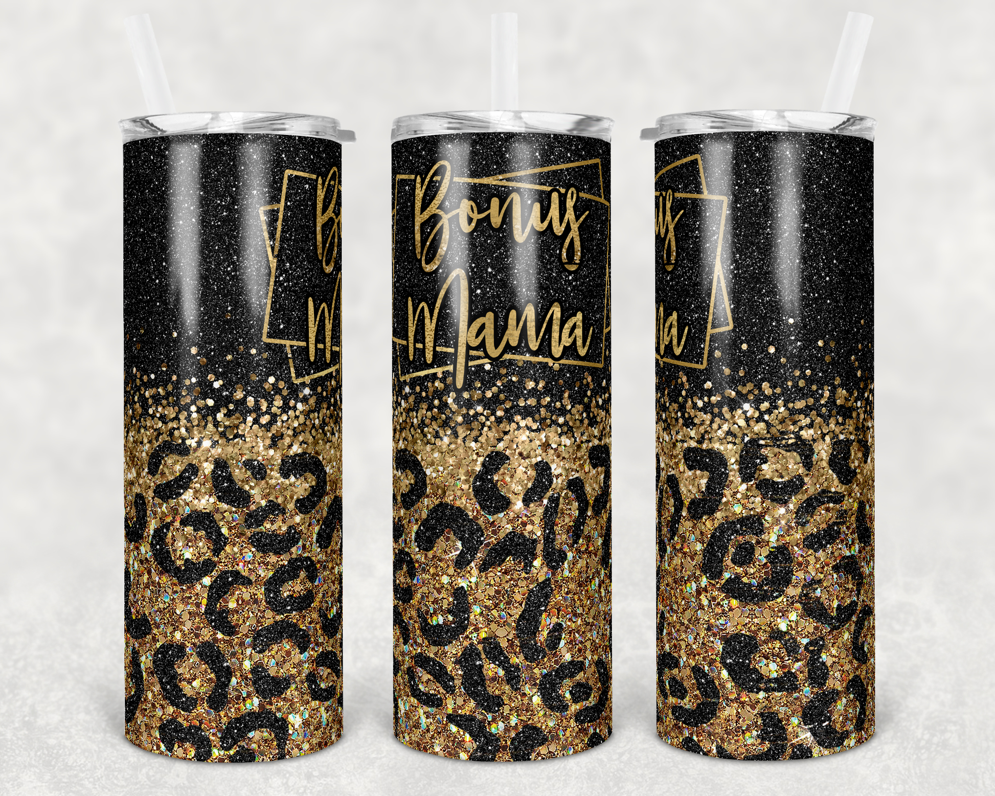 Bonus Mama Black Cheetah - 20oz or 30oz Skinny Tumblers w/ Lid and Metal Straw