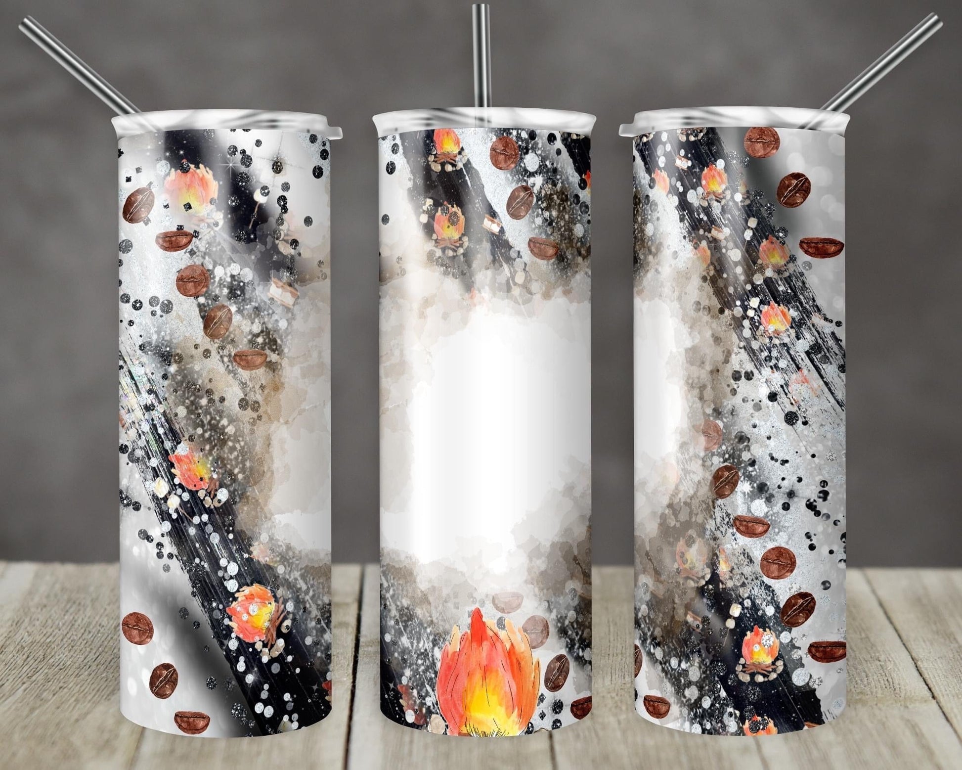Campfire Custom- 20oz or 30oz Skinny Tumblers w/ Lid and Metal Straw