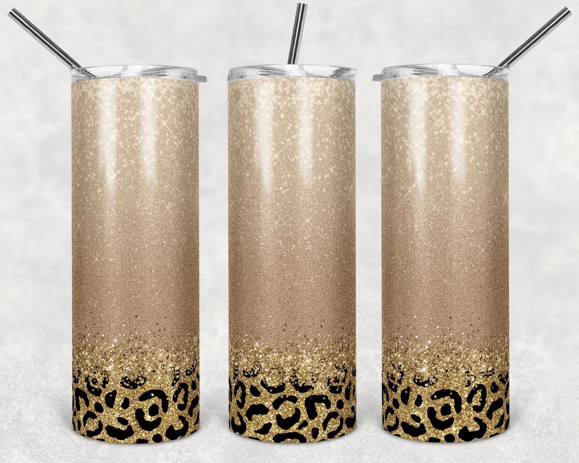 Champagne Gold Leopard - 20oz or 30oz Skinny Tumblers w/ Lid and Metal Straw