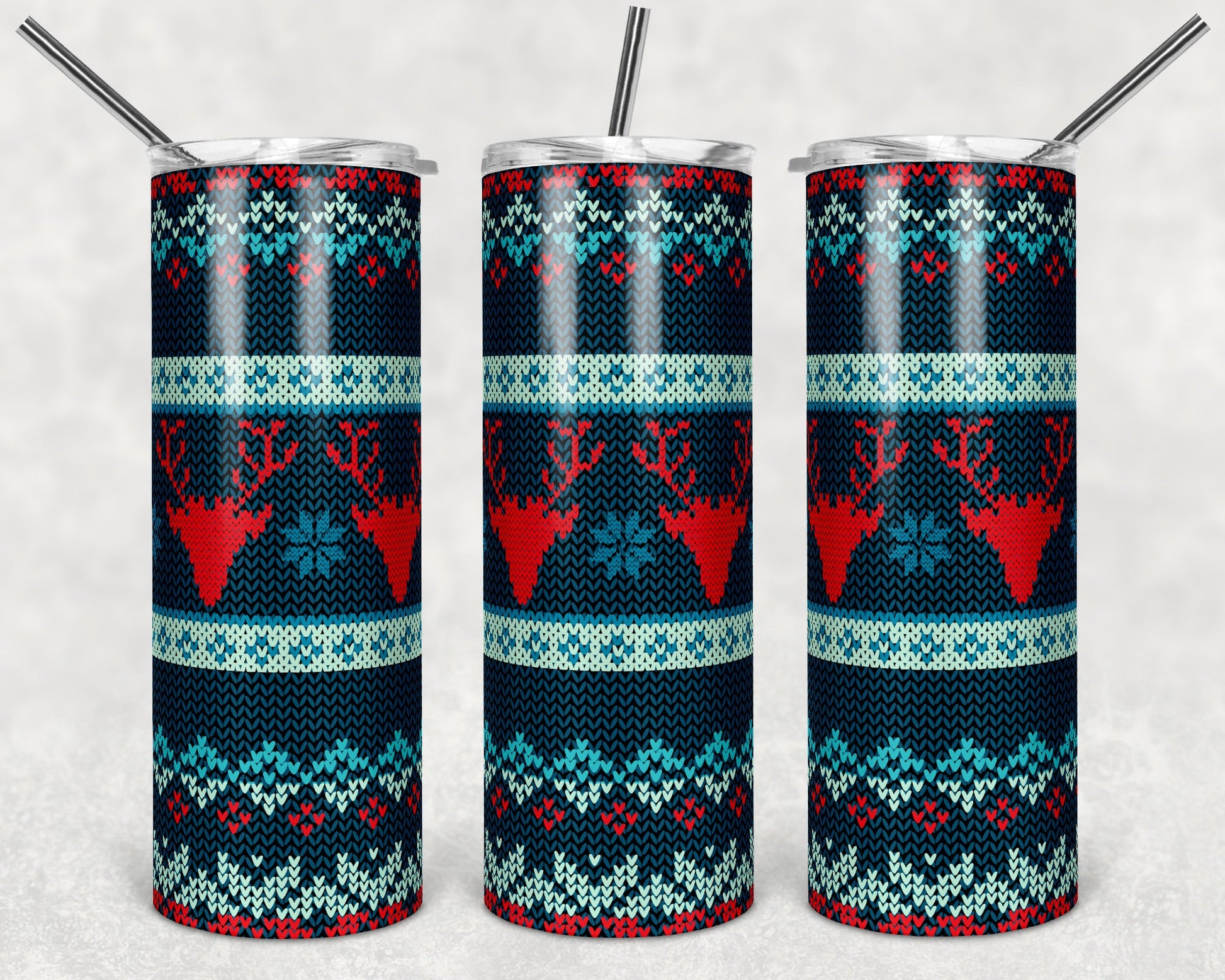 Christmas Sweater Pattern- 20oz or 30oz Skinny Tumblers w/ Lid and Metal Straw