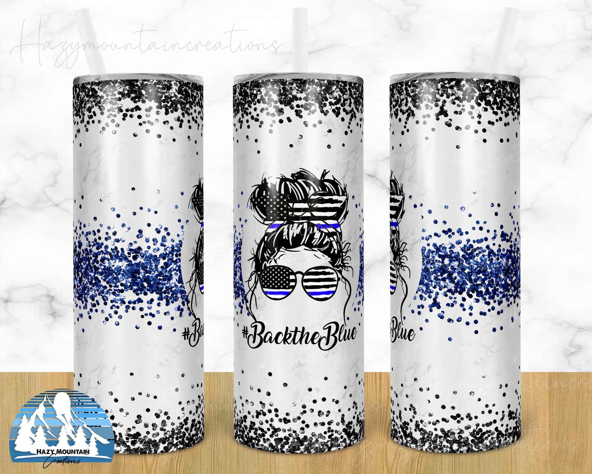Back the Blue - 20oz or 30oz Skinny Tumblers w/ Lid and Metal Straw