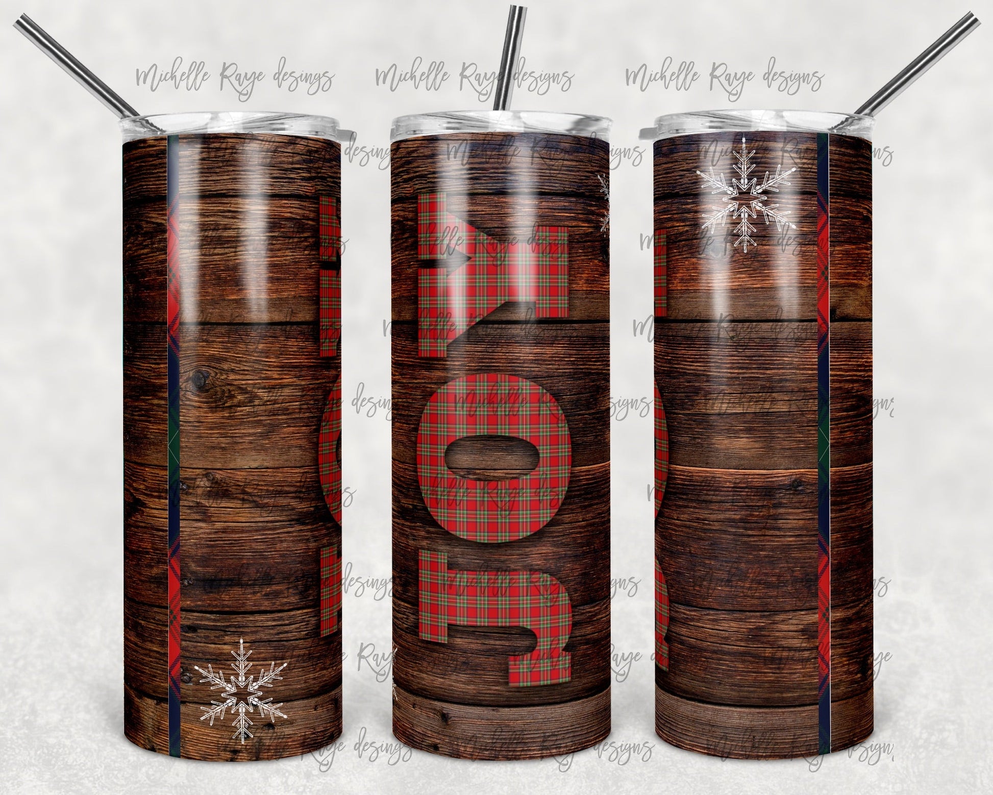 Joy Wood Snowflakes - 20oz or 30oz Skinny Tumblers w/ Lid and Metal Straw