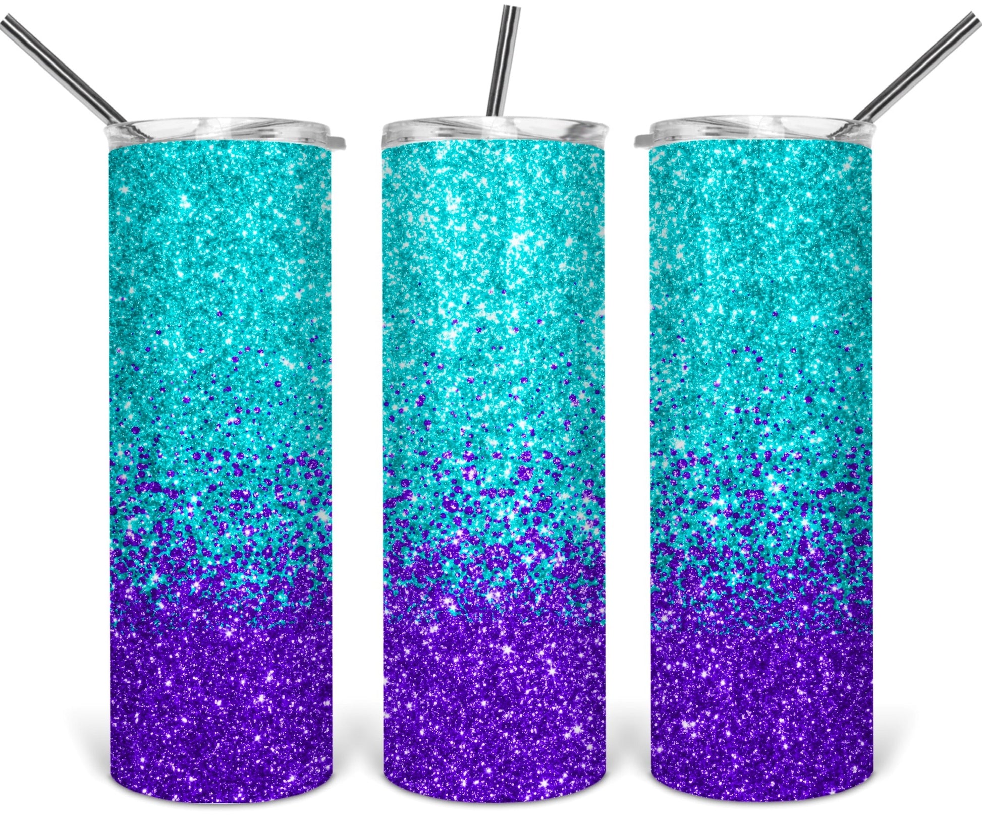 Teal and Purple Glitter ombré - 20oz or 30oz Skinny Tumblers w/ Lid and Metal Straw