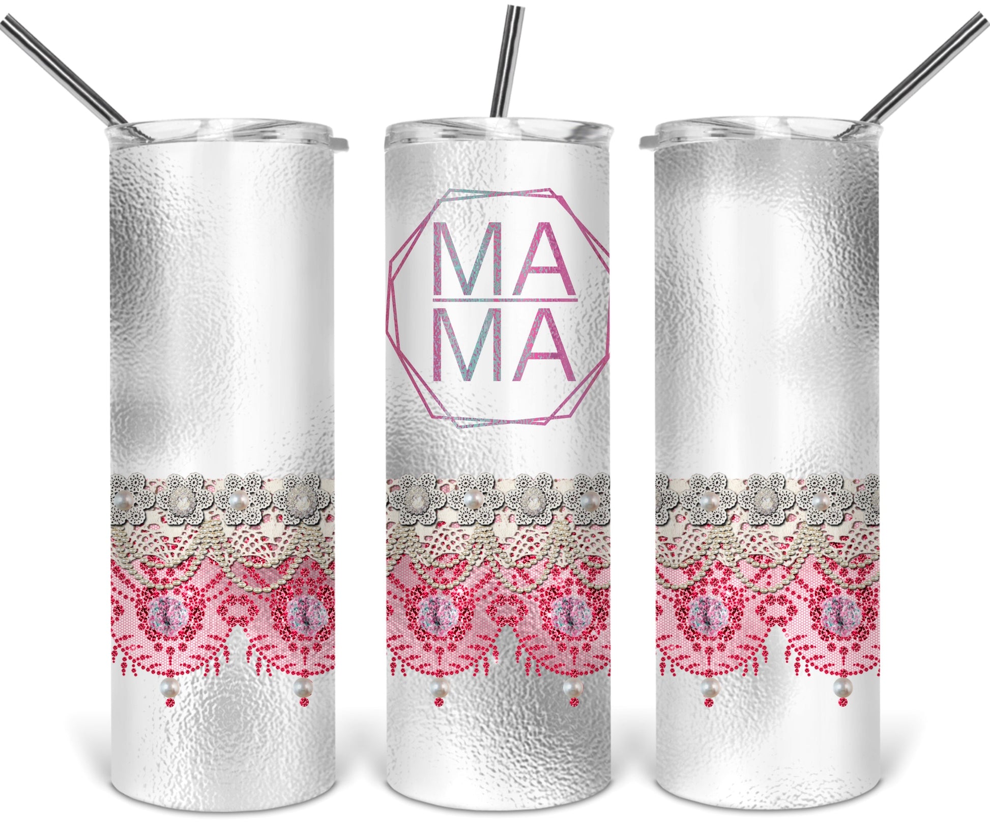 CPink Glitter Mama- 20oz or 30oz Skinny Tumblers w/ Lid and Metal Straw