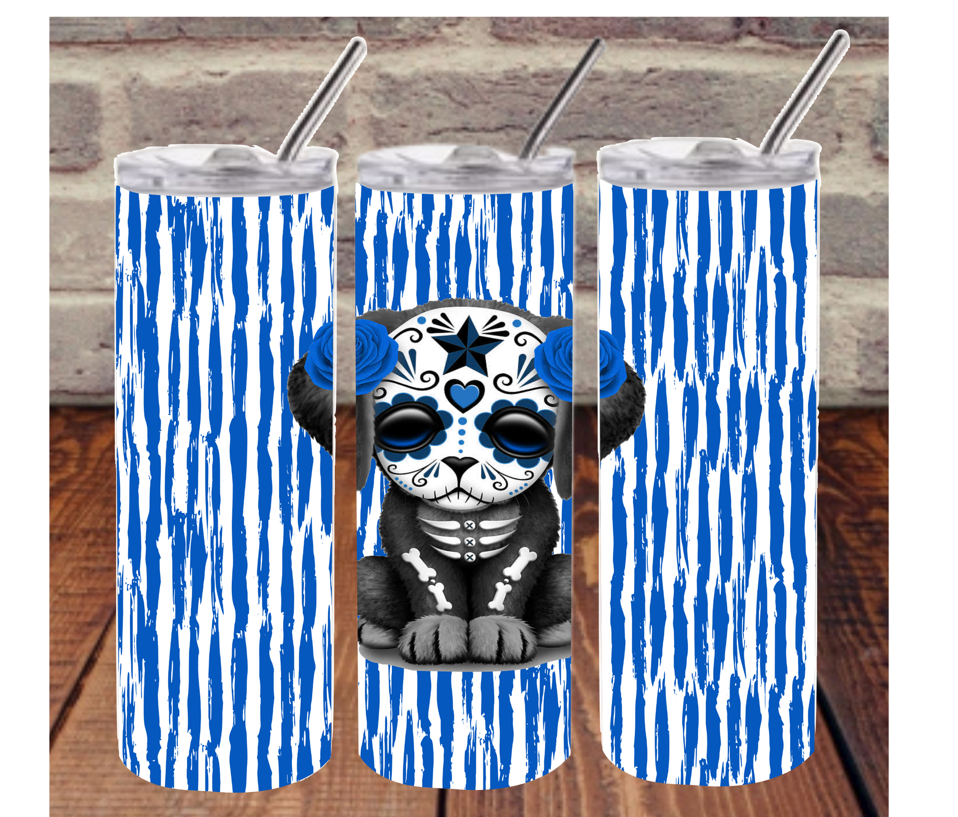 Sugar Skull Dog - 20oz or 30oz Skinny Tumblers w/ Lid and Metal Straw