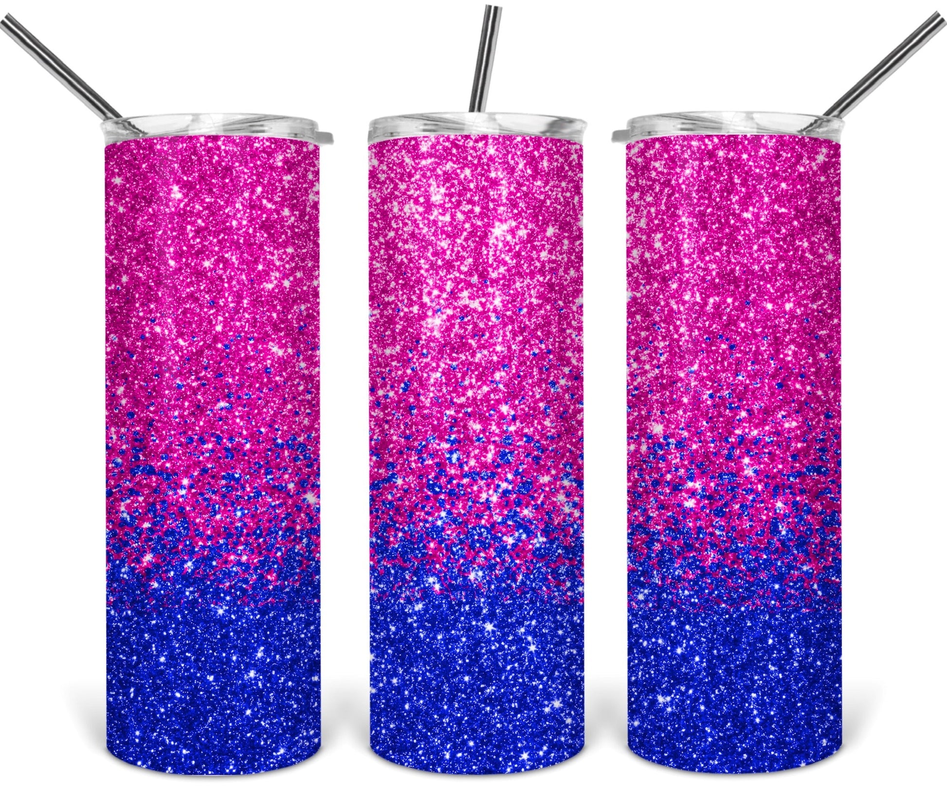 Pink and Blue Glitter ombré - 20oz or 30oz Skinny Tumblers w/ Lid and Metal Straw