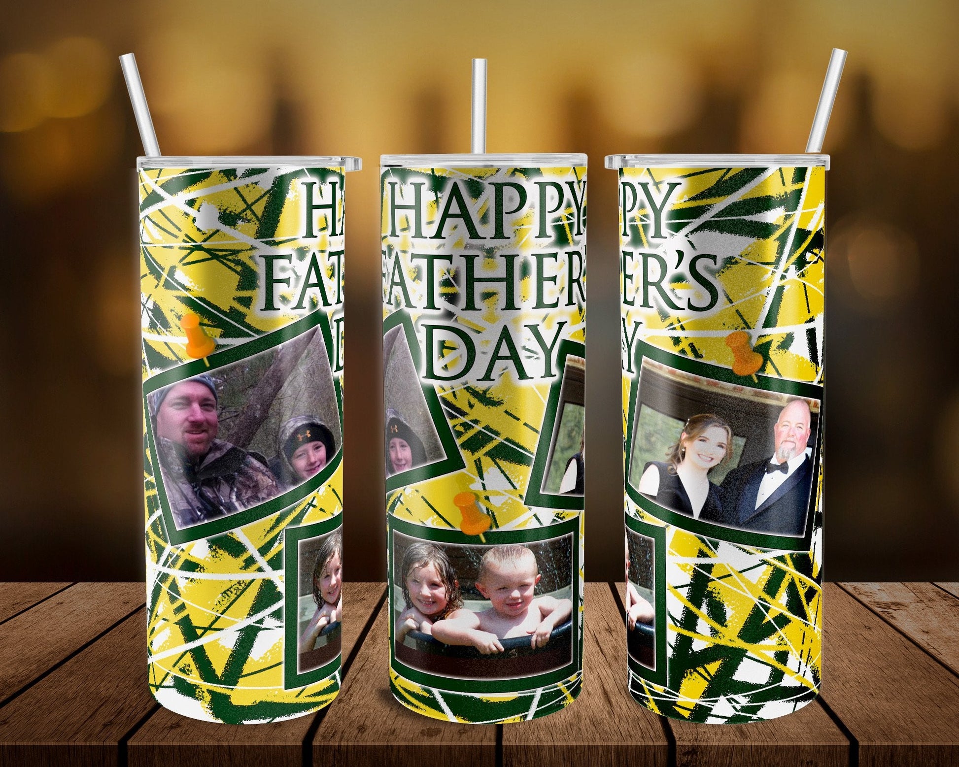Yellow Green And White Father Picture - 20 oz or 30oz Skinny Tumblers w/ Lid and Metal Straw