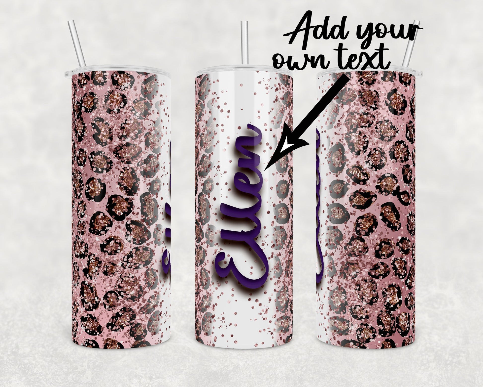 Custom Name Cheetah Print- 20oz or 30oz Skinny Tumblers w/ Lid and Metal Straw