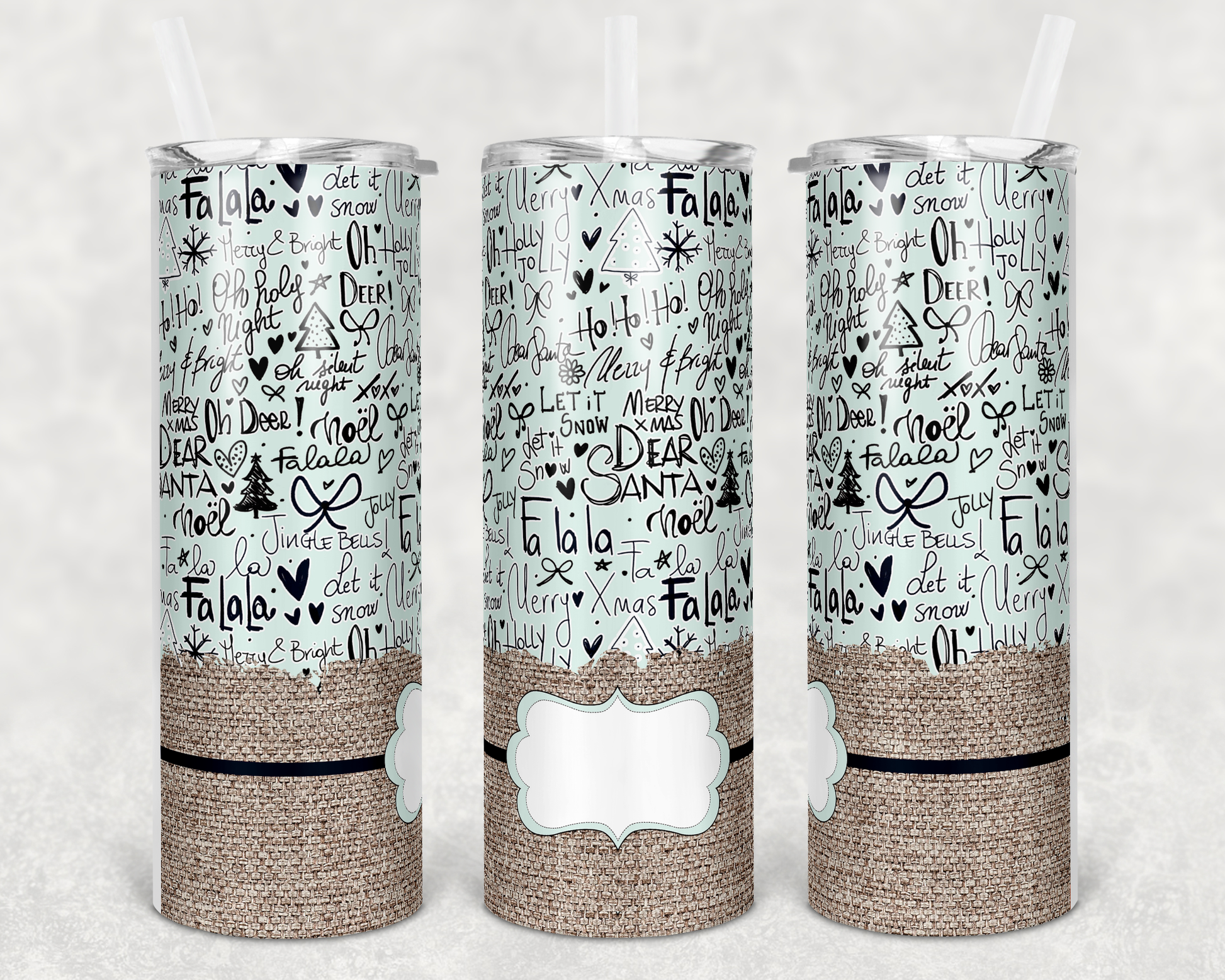 Custom Name w/ Xmas Sayings- 20 oz or 30oz Skinny Tumblers w/ Lid and Metal Straw