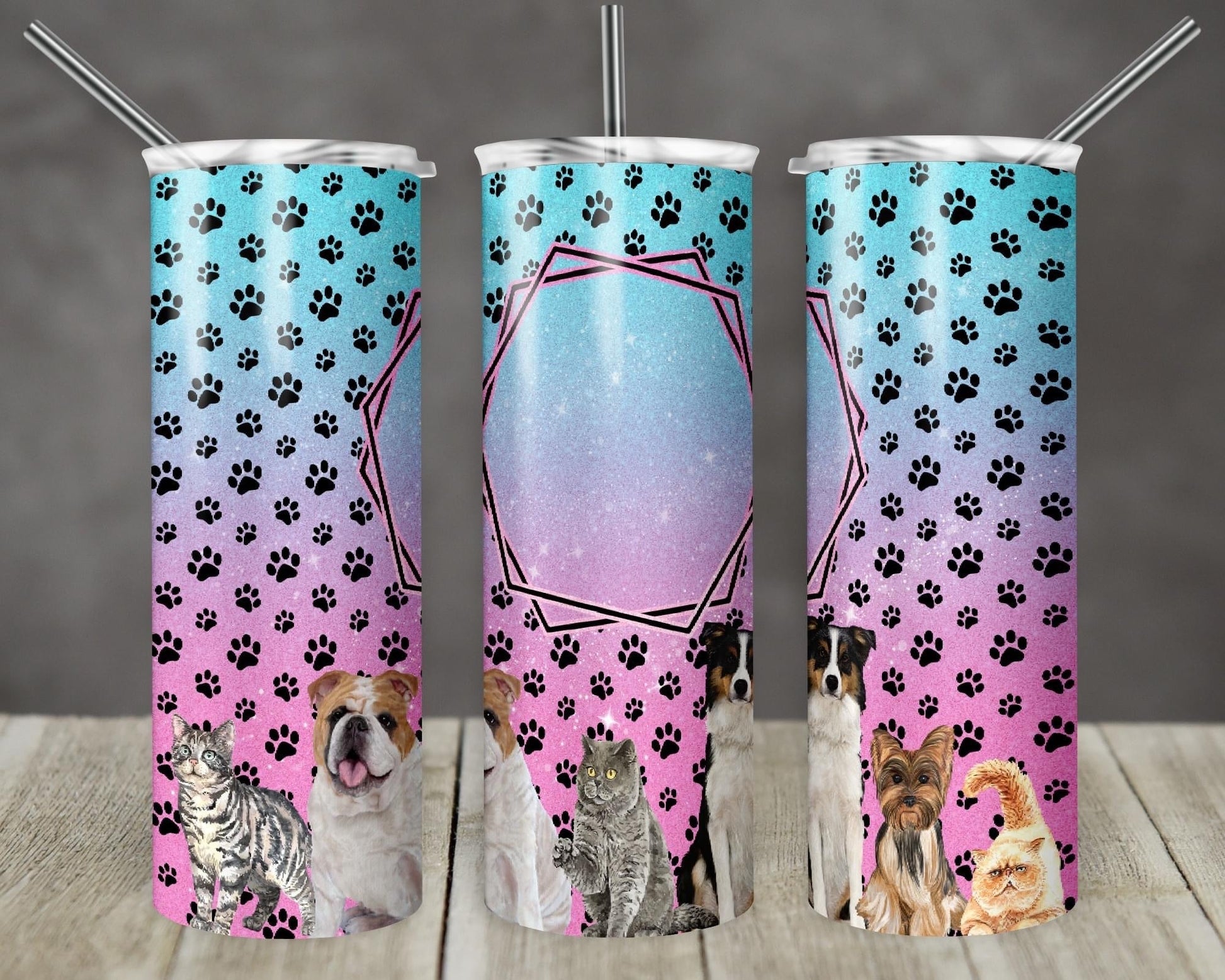 Dog Print Custom- 20oz or 30oz Skinny Tumblers w/ Lid and Metal Straw