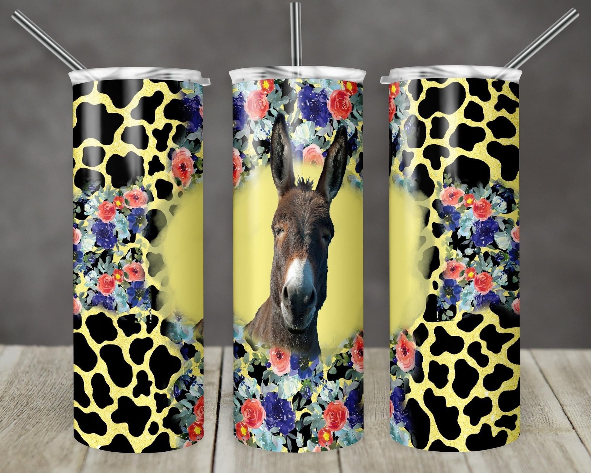 Donkey Floral - 20oz or 30oz Skinny Tumblers w/ Lid and Metal Straw