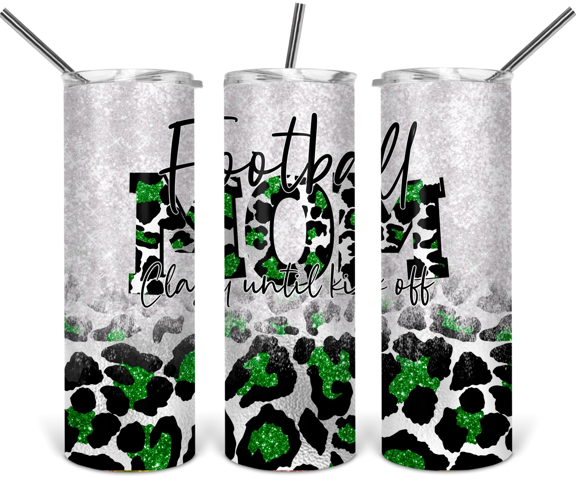 Football Mom Green and Silver Leopard School - 20 oz or 30oz Skinny Tumblers w/ Lid and Metal Straw