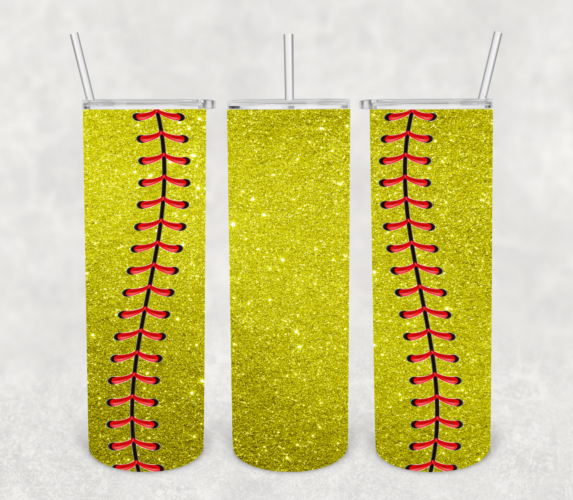 Glitter Softball Laces- 20oz or 30oz Skinny Tumblers w/ Lid and Metal Straw