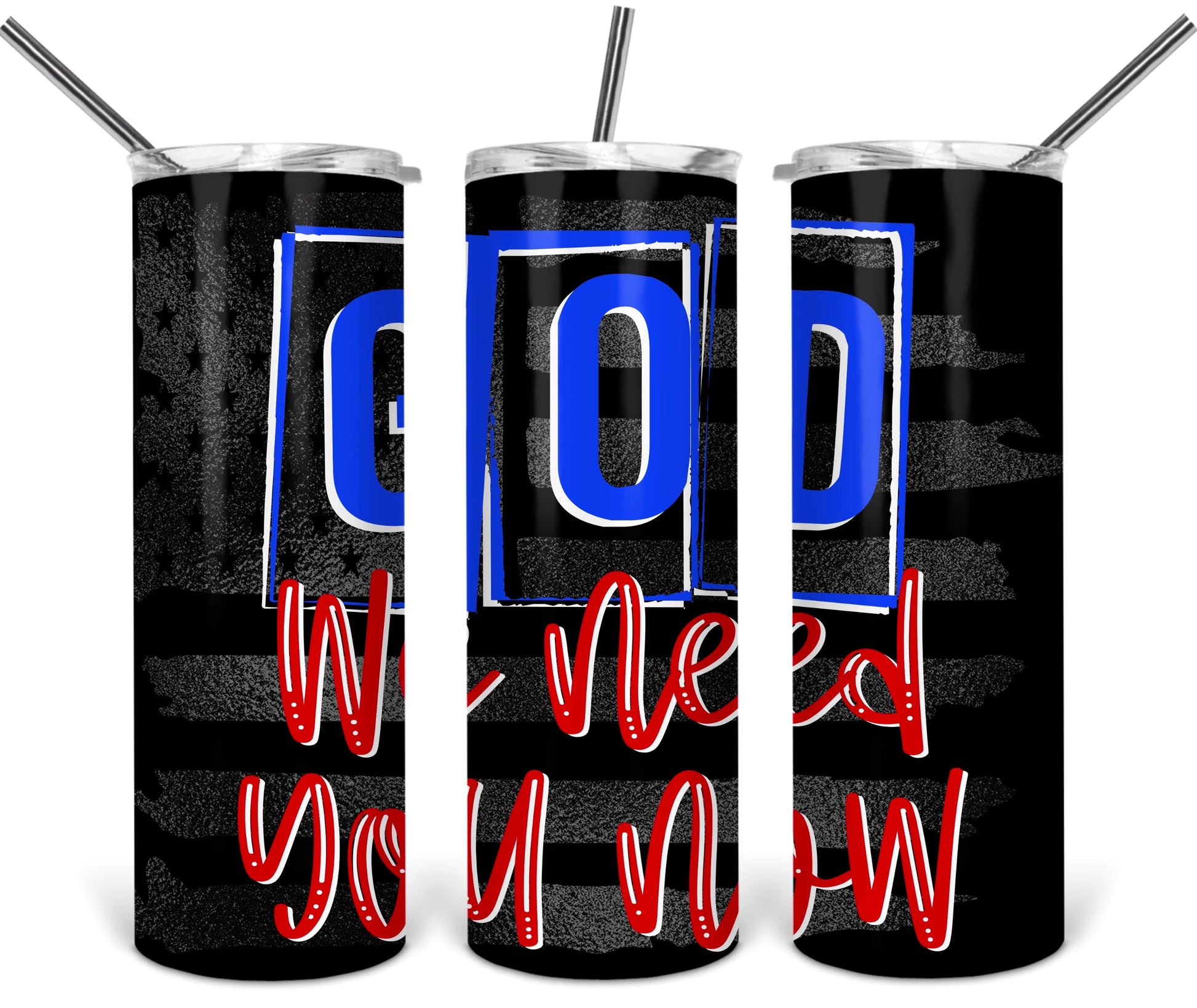 God We Need You Now - 20 oz or 30oz Skinny Tumblers w/ Lid and Metal Straw