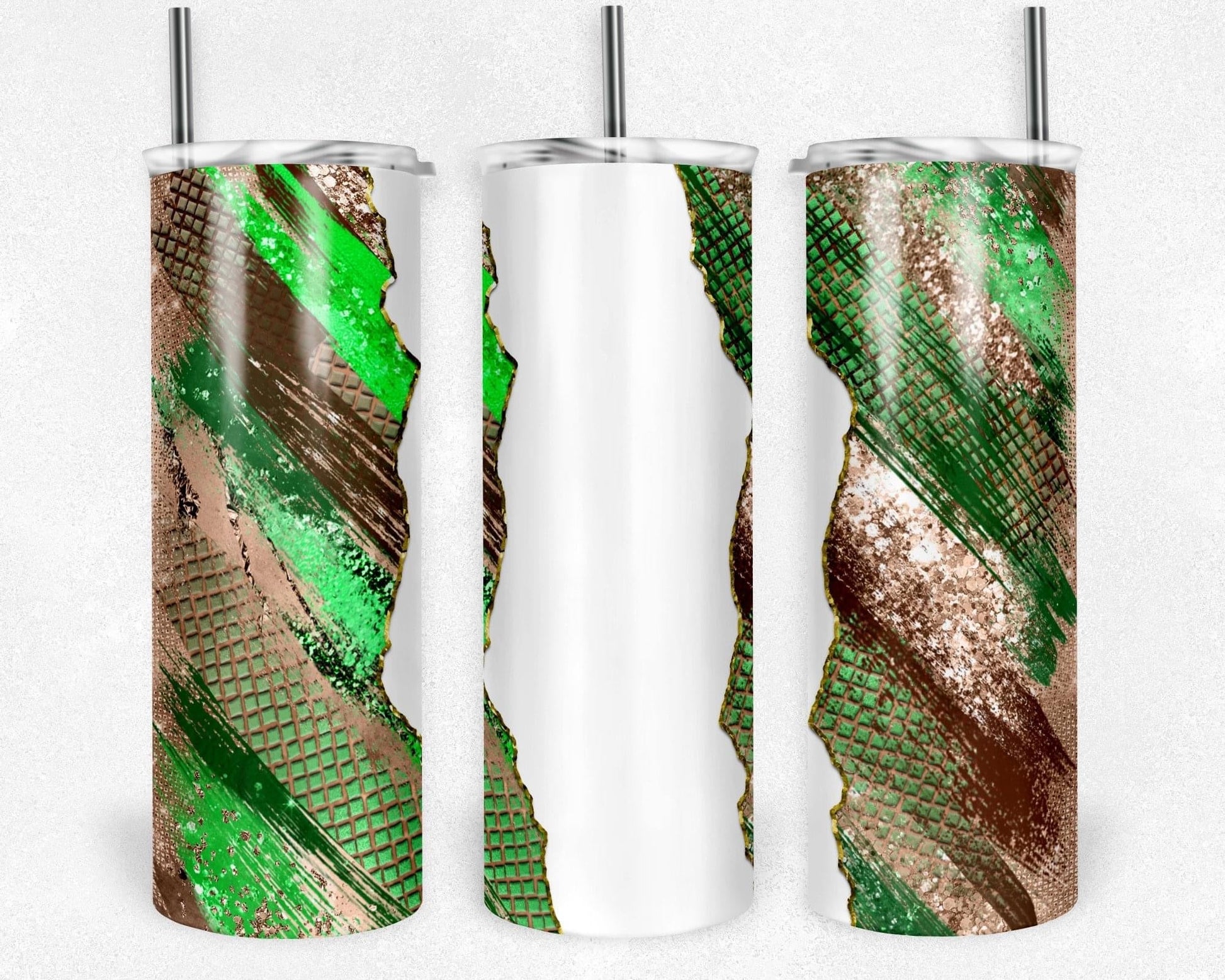 Green & Brown Sparkle - 20oz or 30oz Skinny Tumblers w/ Lid and Metal Straw