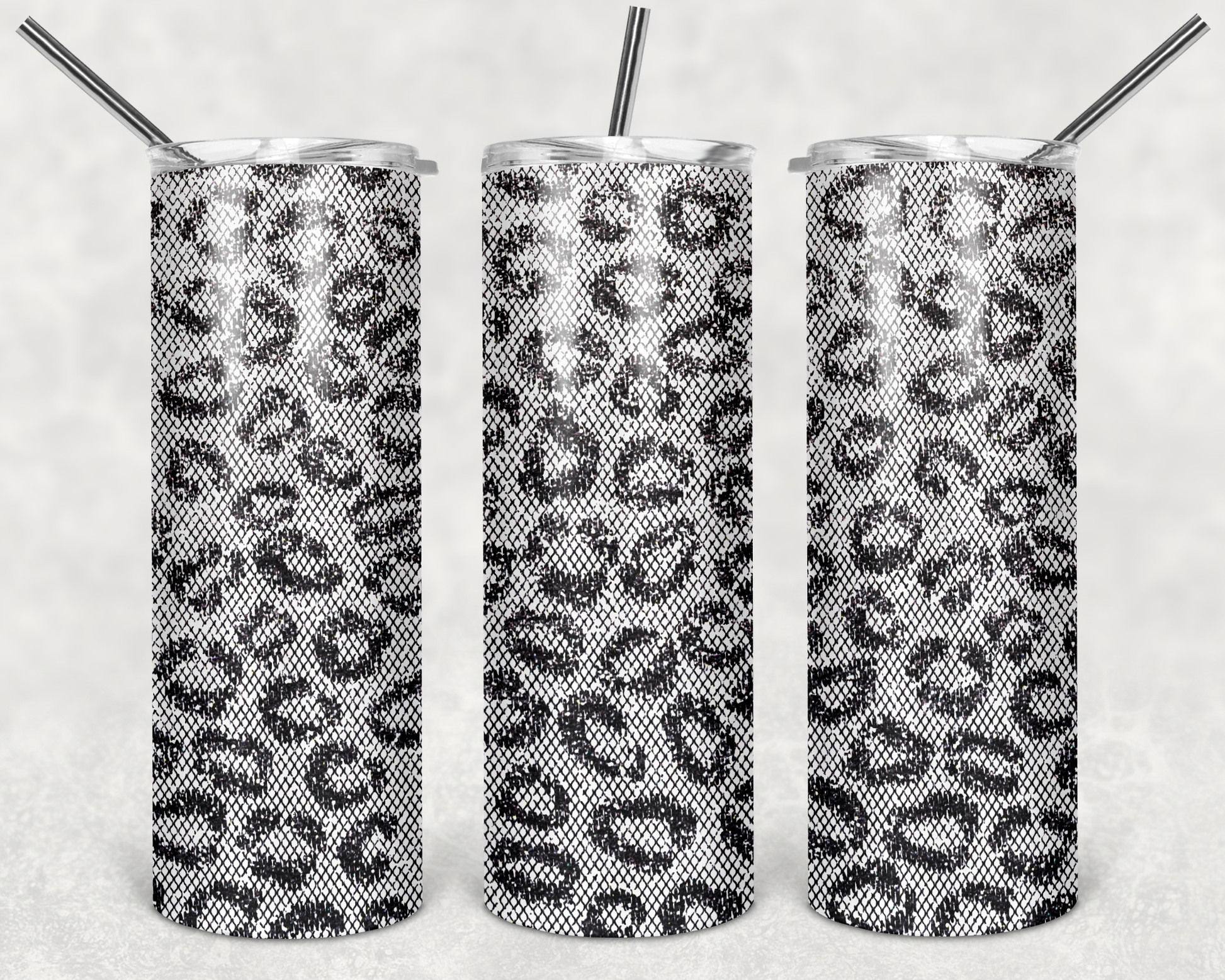 Grey Leopard - 20 or 30oz Skinny Tumblers w/ Lid and Metal Straw