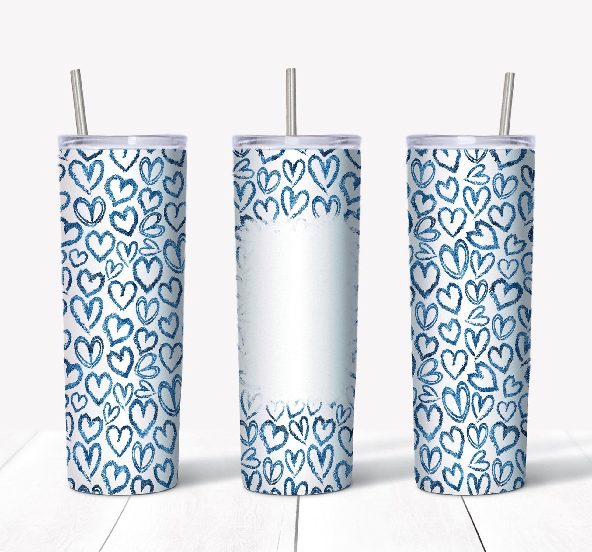 Light Blue Hearts w/ Picture - 20oz or 30oz Skinny Tumblers w/ Lid and Metal Straw