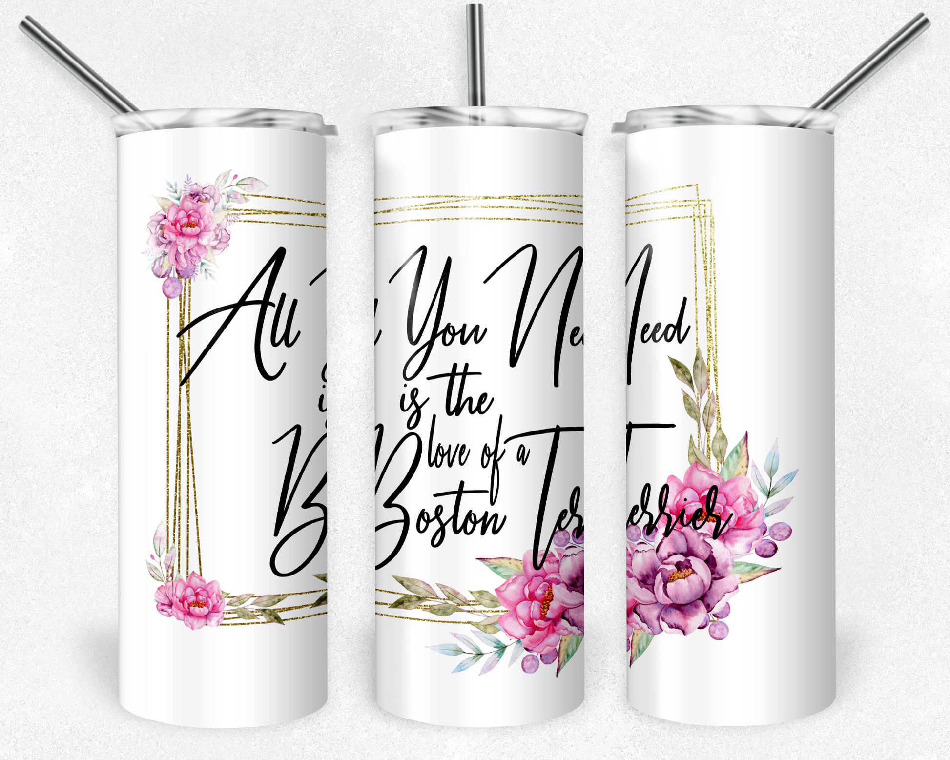 Love of Boston Terrier- 20oz or 30oz Skinny Tumblers w/ Lid and Metal Straw
