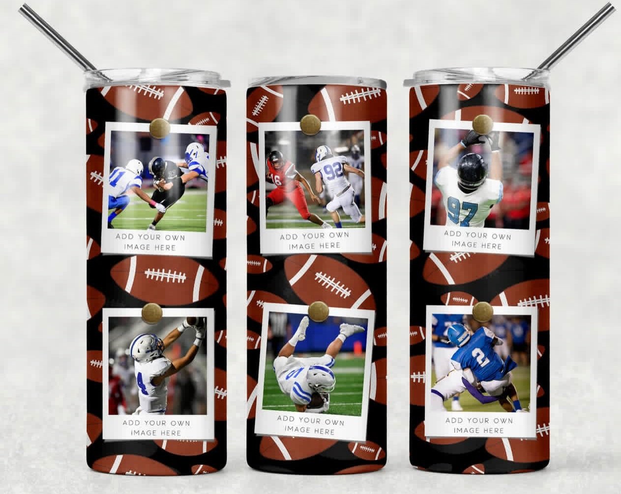 Multiple Footballs W/ Pictures20 oz or 30oz Skinny Tumblers w/ Lid and Metal Straw
