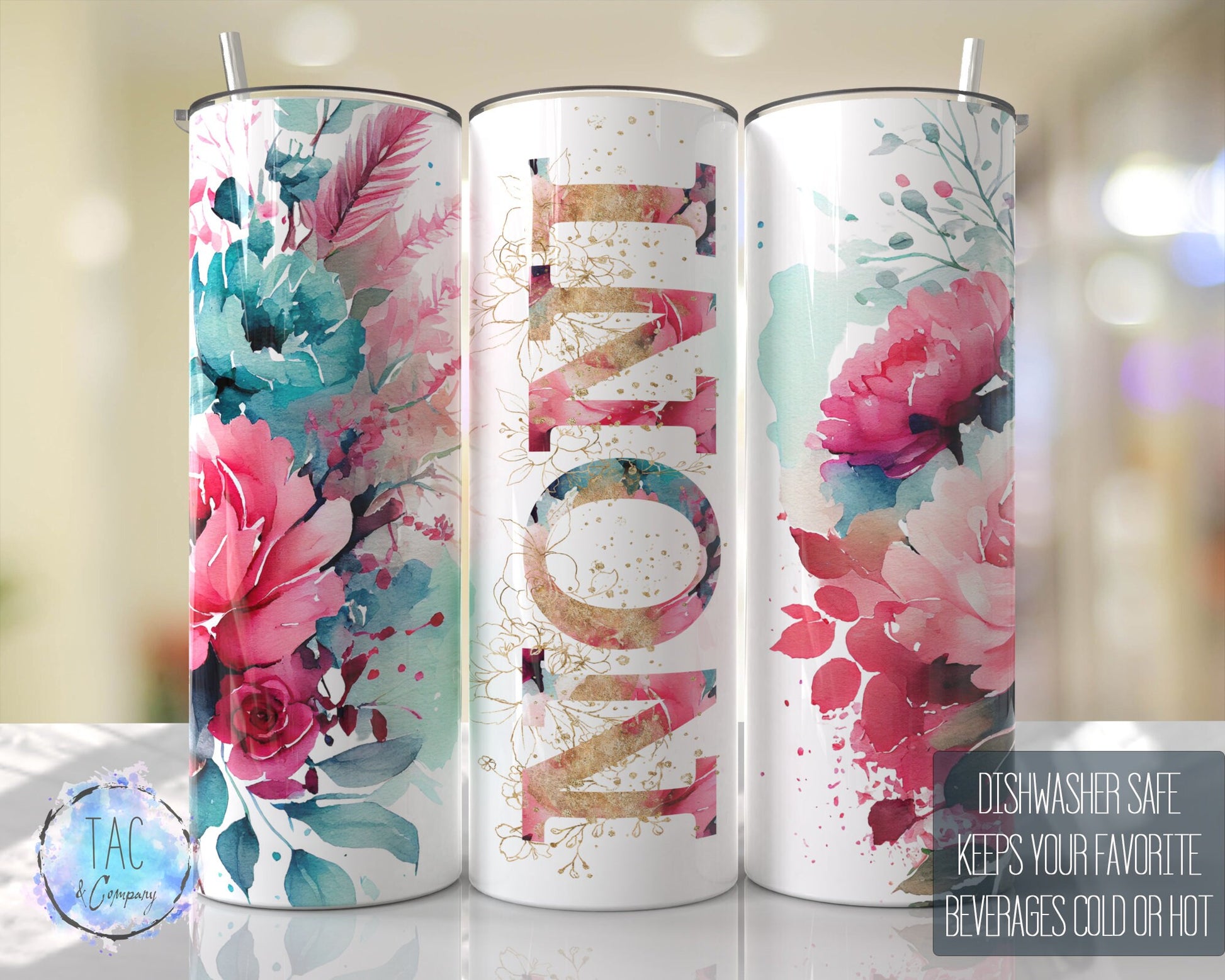 Noni Aqua Blue Floral Seamless Floral Tumbler Seamless Gift for her, Mothers Day Travel Tumbler- Skinny 20oz Tumbler