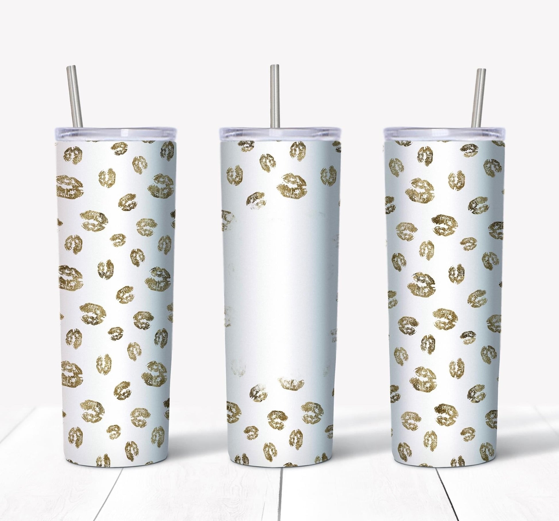 Olive Green Kisses w/ Picture- 20oz or 30oz Skinny Tumblers w/ Lid and Metal Straw