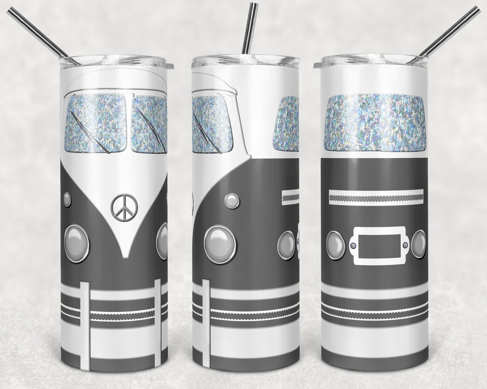 Volkswagen Gray Hippy Peace - 20 oz or 30oz Skinny Tumblers w/ Lid and Metal Straw