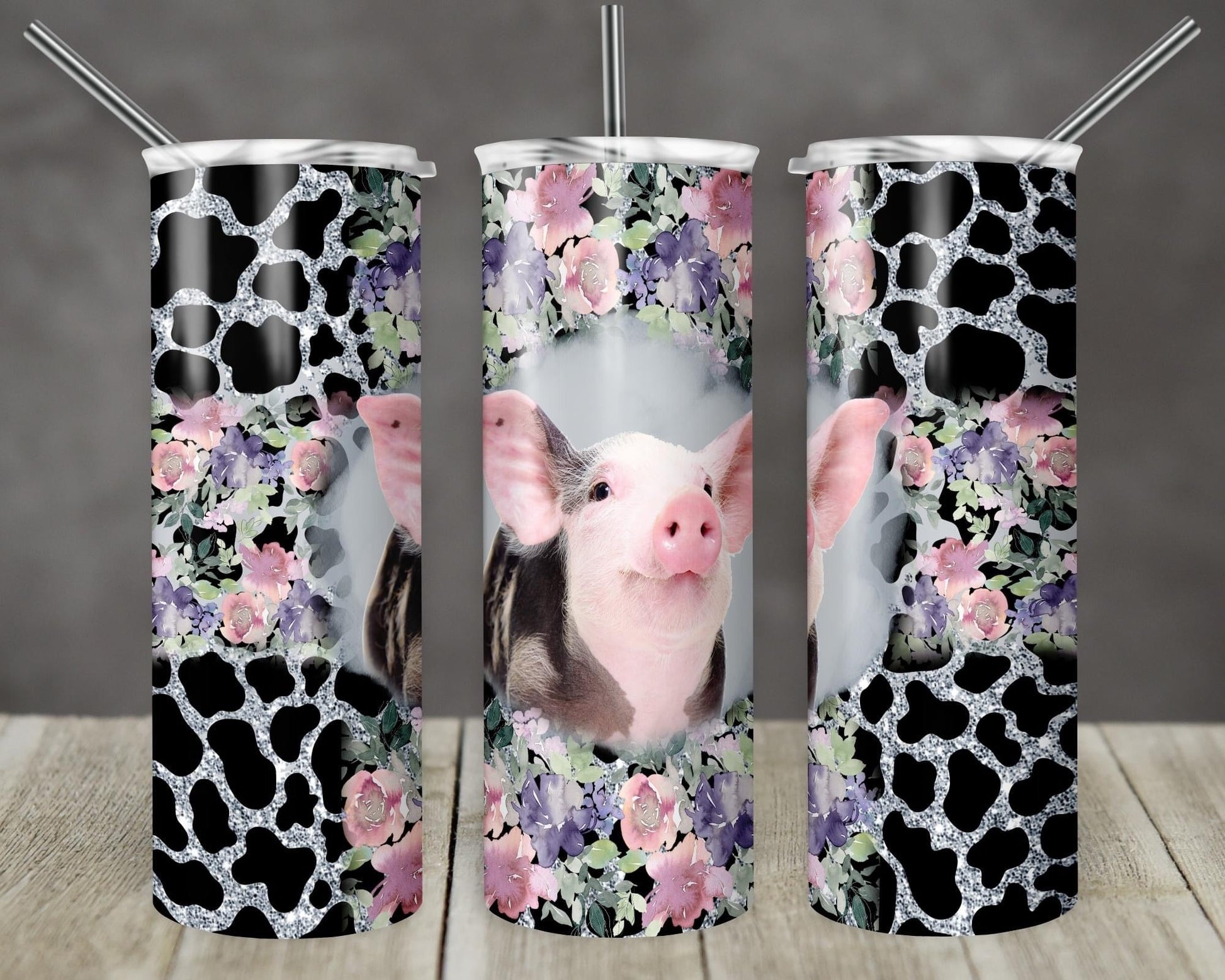 Pig Floral - 20oz or 30oz Skinny Tumblers w/ Lid and Metal Straw