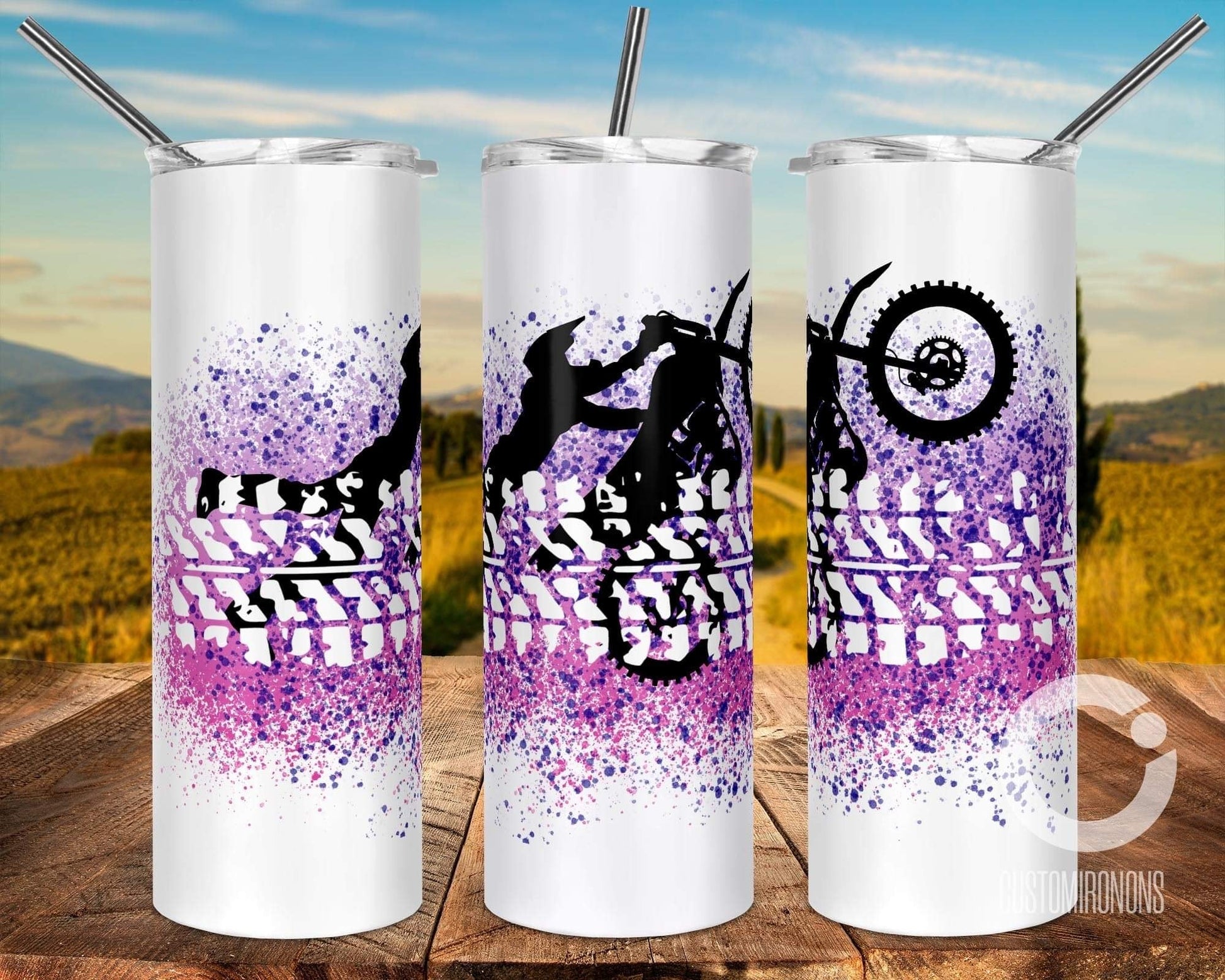 Pink Dirtbike - 20oz or 30oz Skinny Tumblers w/ Lid and Metal Straw