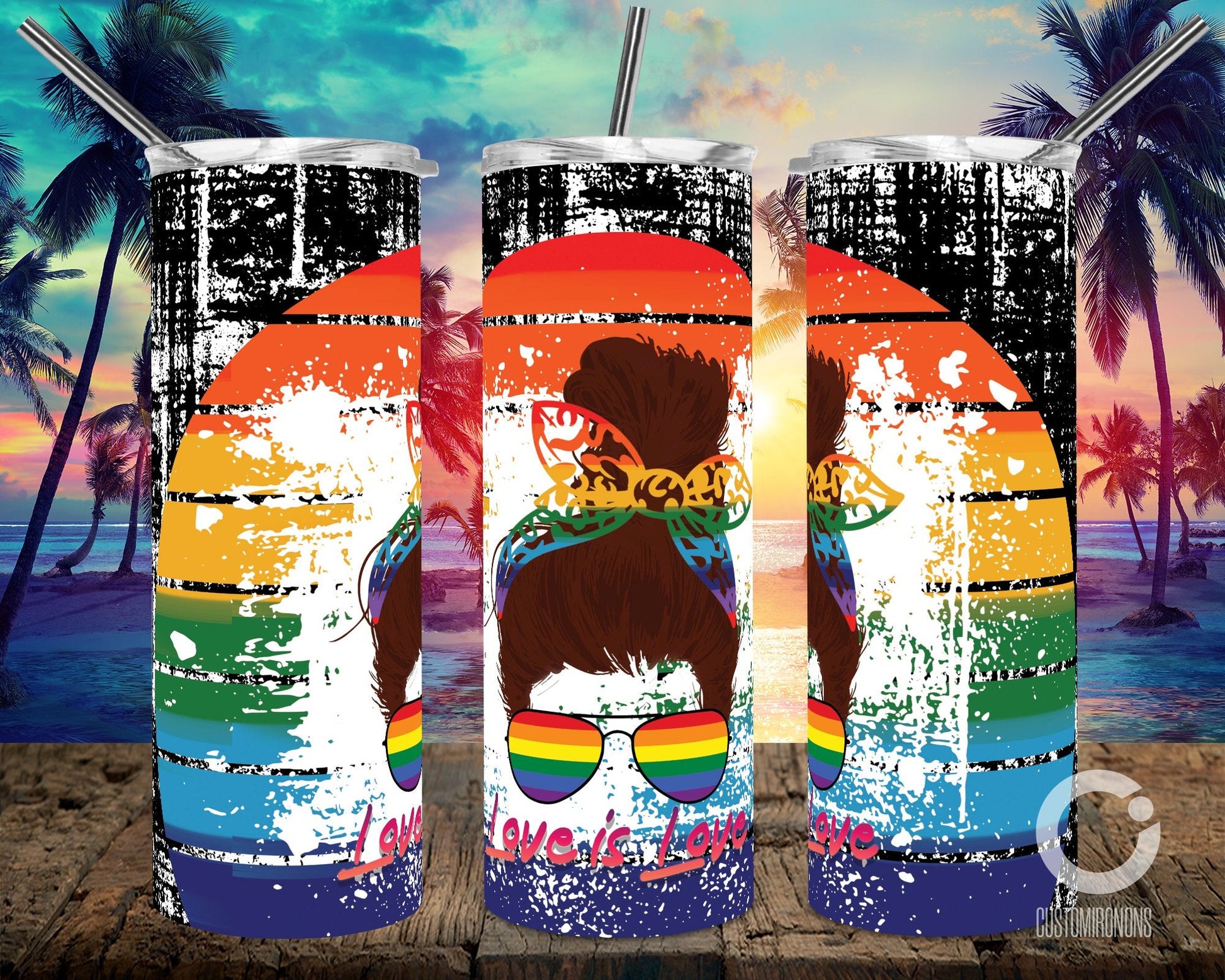 Pride Messy Bun - 20oz or 30oz Skinny Tumblers w/ Lid and Metal Straw