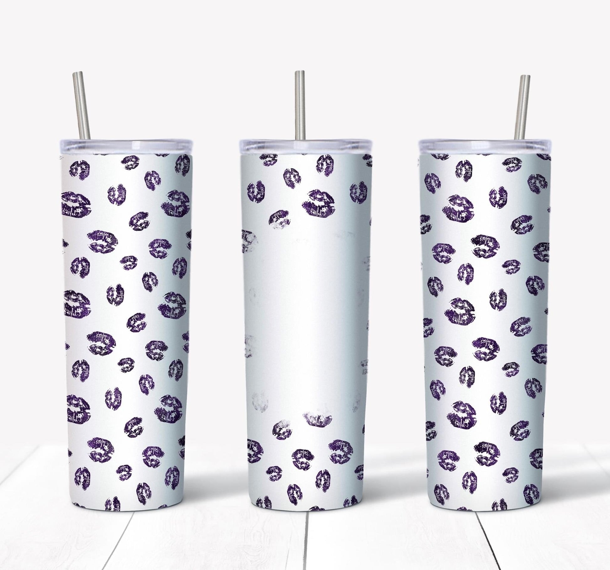Purple Kisses W/ Picture- 20oz or 30oz Skinny Tumblers w/ Lid and Metal Straw
