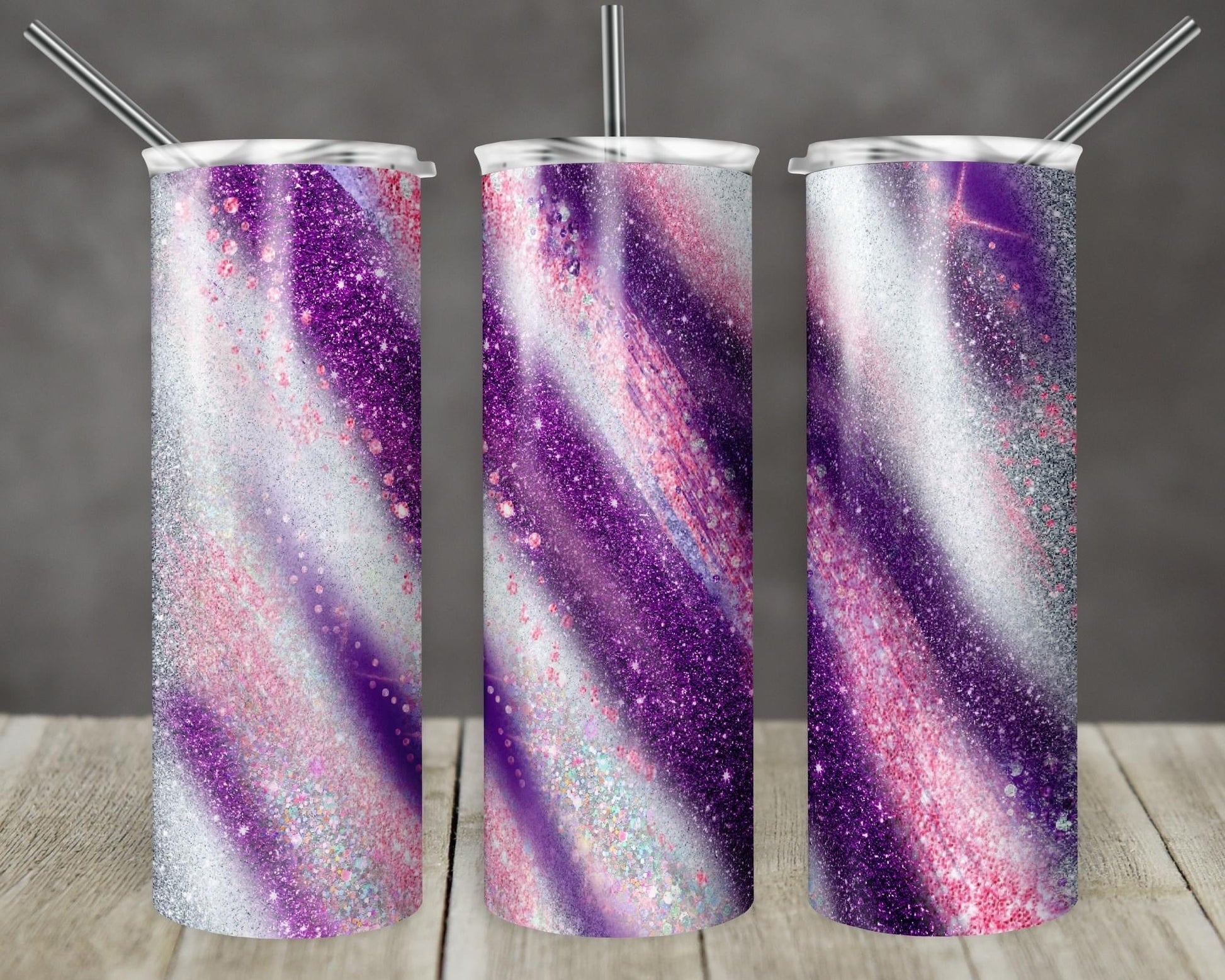 Purple Pink & White Striped- 20oz or 30oz Skinny Tumblers w/ Lid and Metal Straw