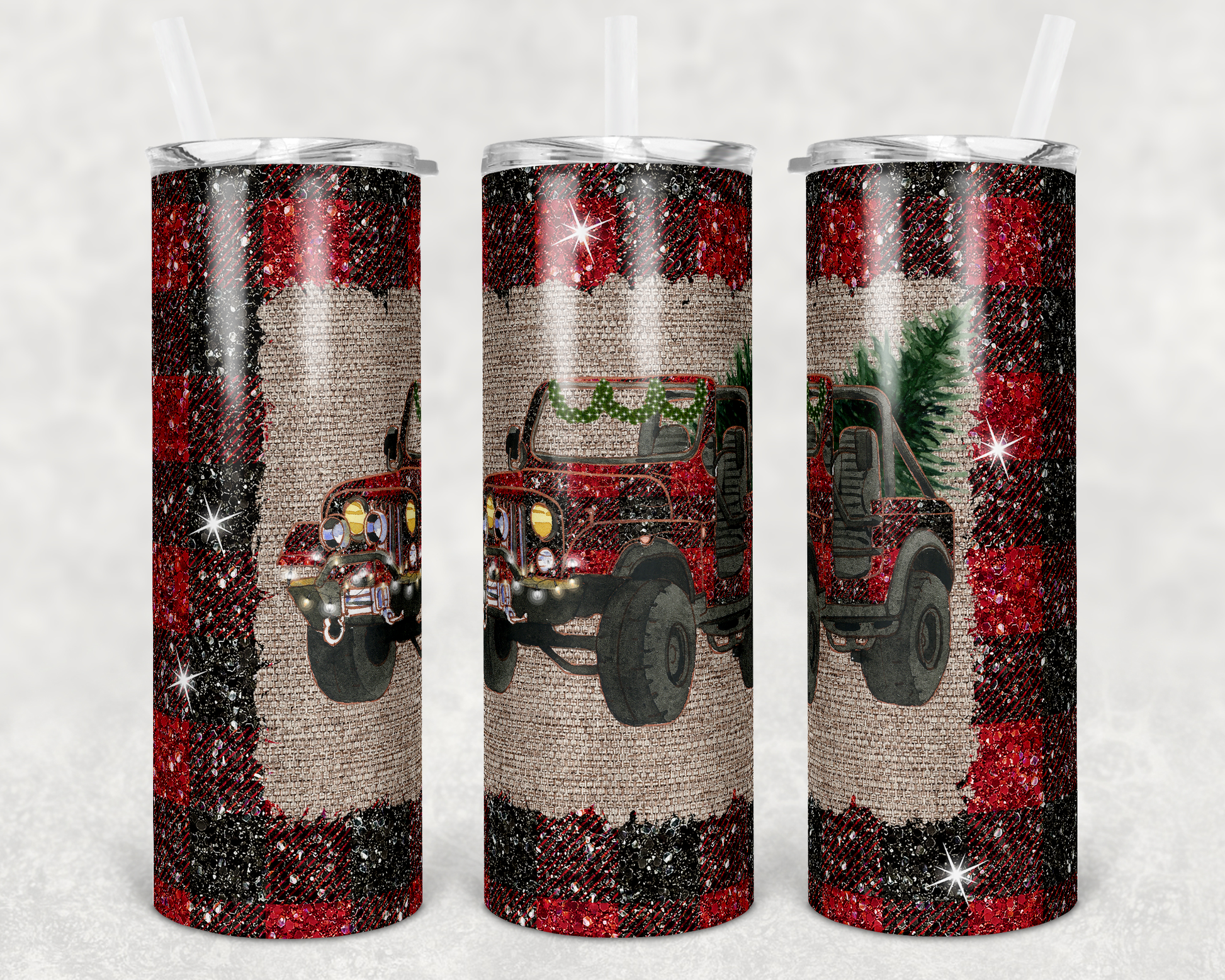 Red Plaid Jeep- 20 oz or 30oz Skinny Tumblers w/ Lid and Metal Straw