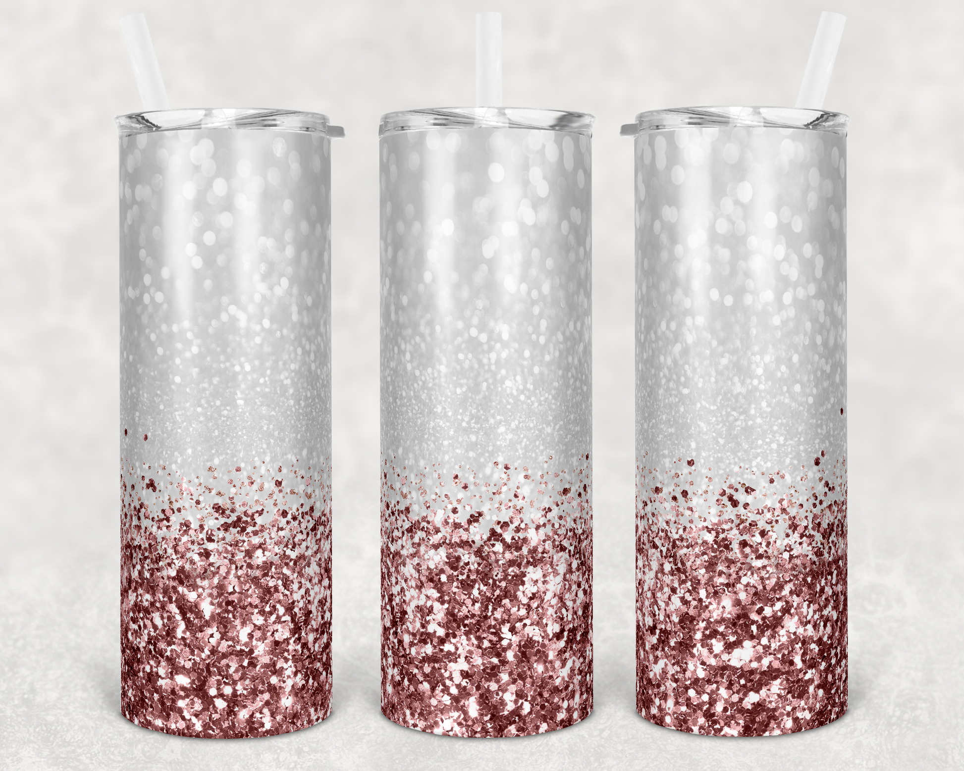 Rose Gold Glitter - 20oz or 30oz Skinny Tumblers w/ Lid and Metal Straw
