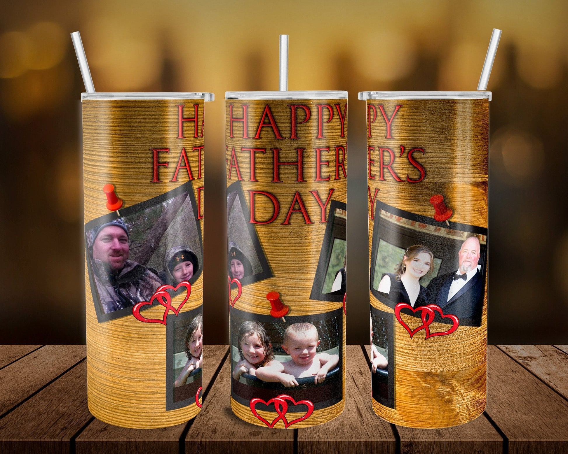 SideWays Wood Father Picture - 20 oz or 30oz Skinny Tumblers w/ Lid and Metal Straw